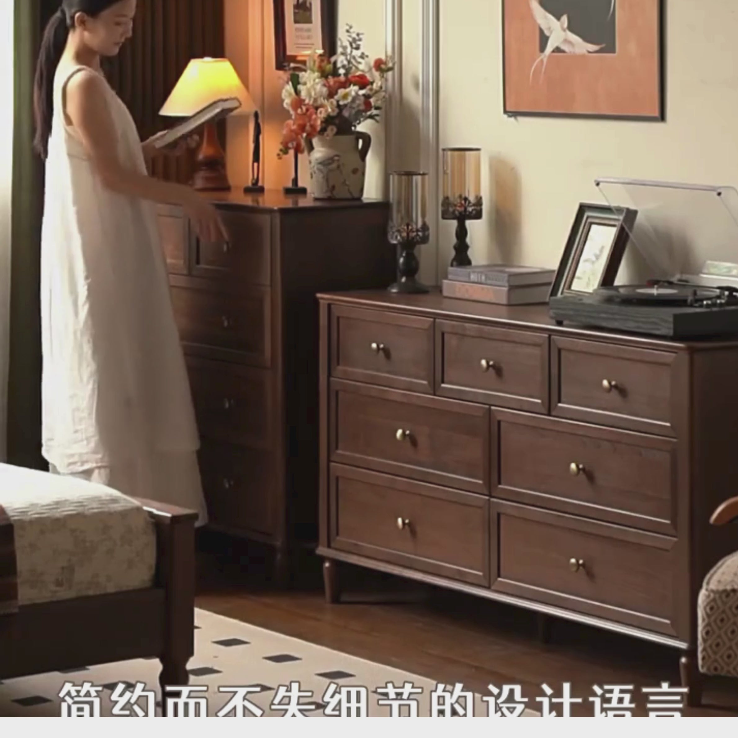 Black Walnut Solid Wood American Retro Chest of Drawers.
