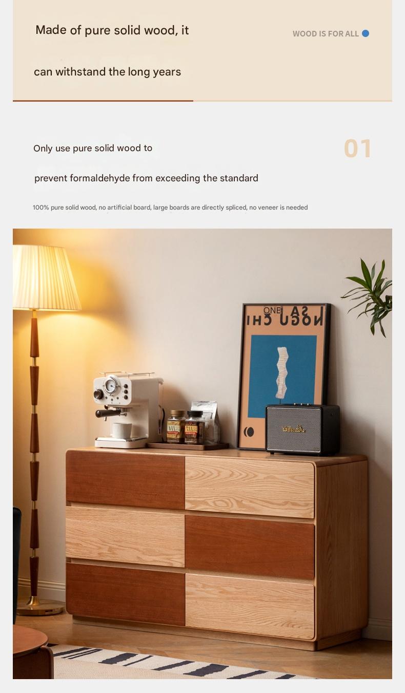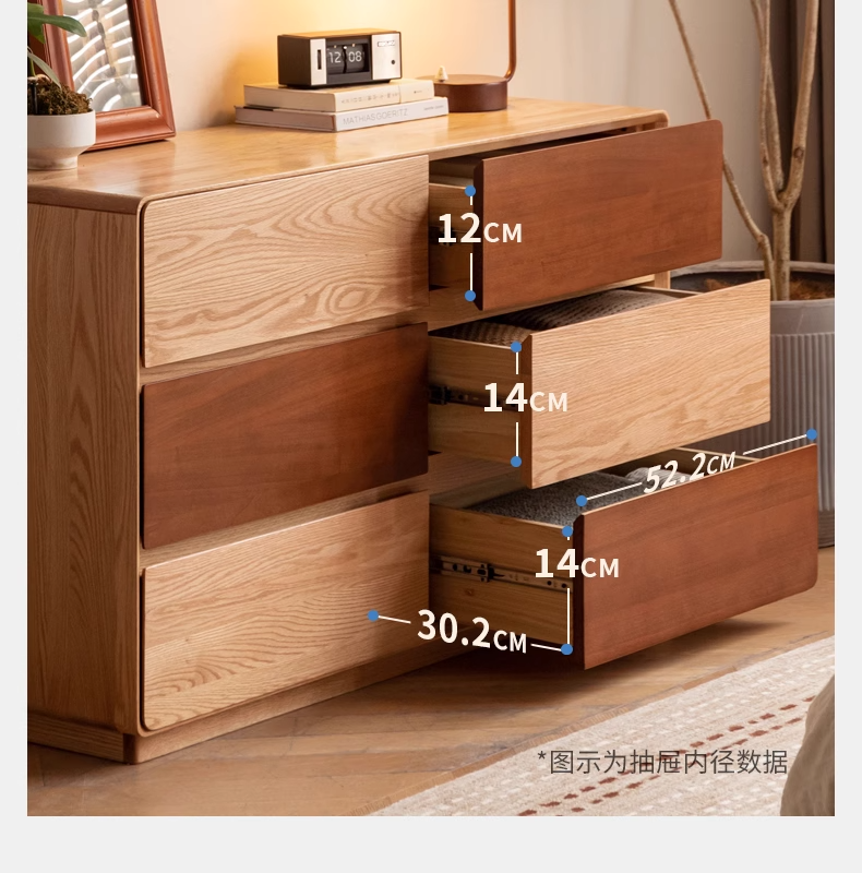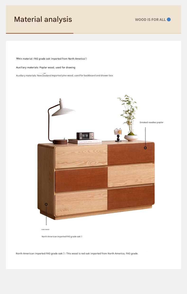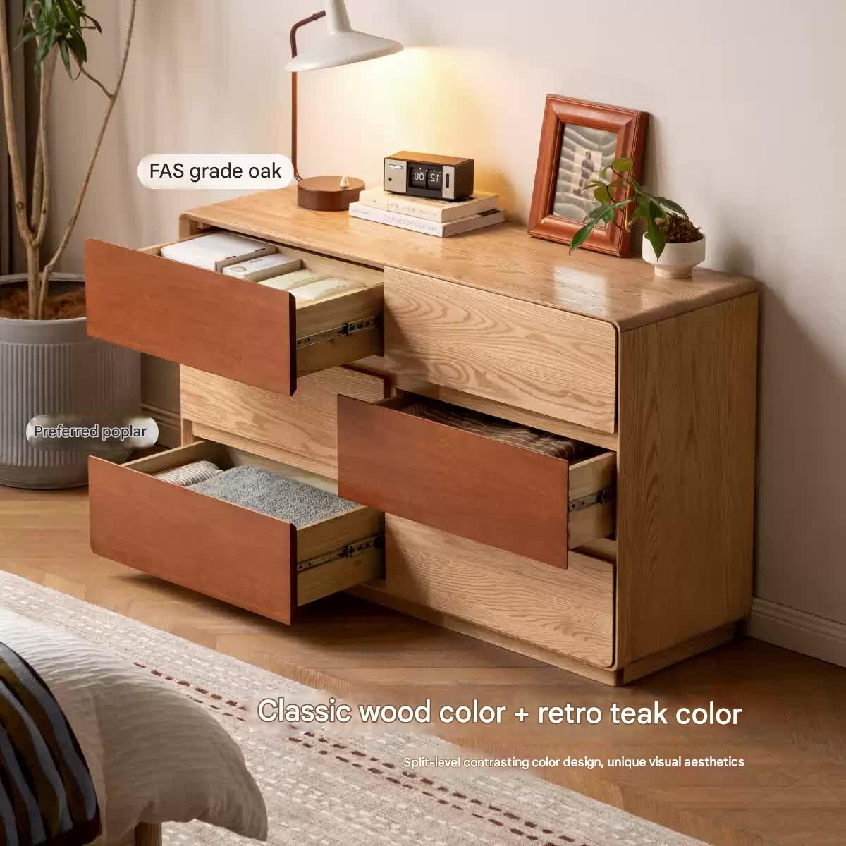 Oak Solid Wood Modern Drawer Cabinet.