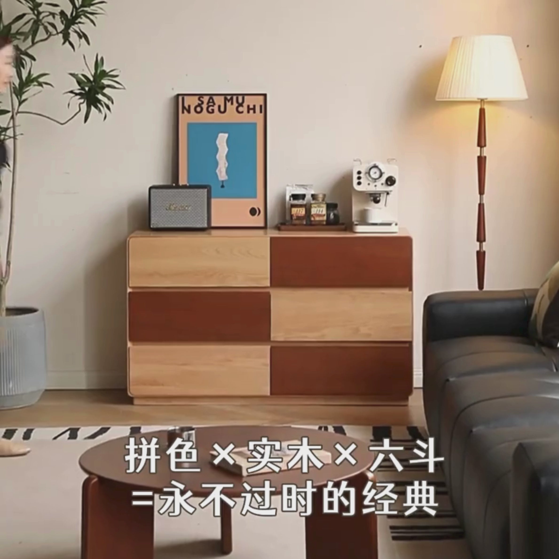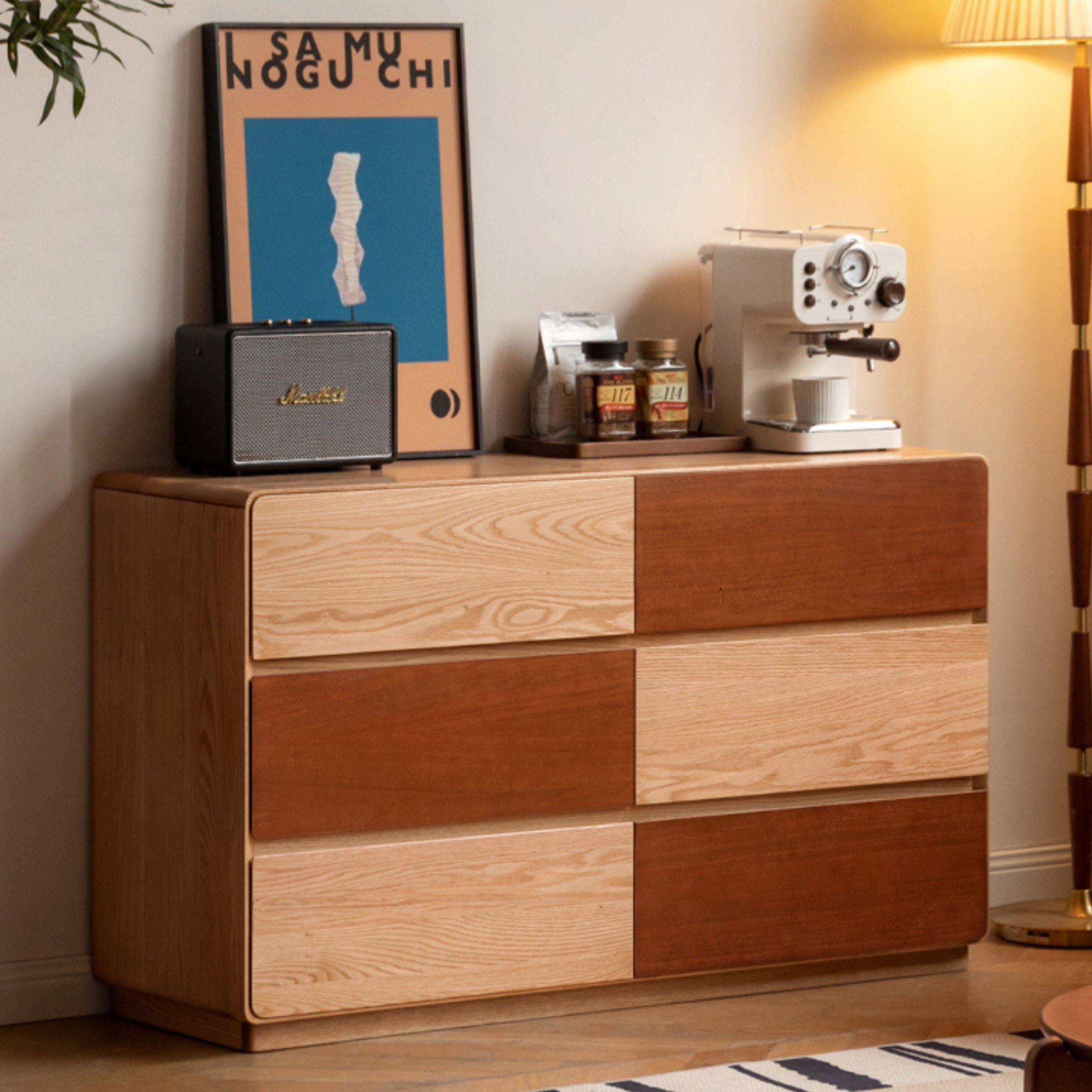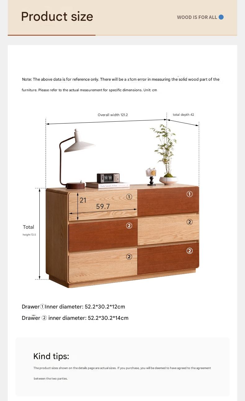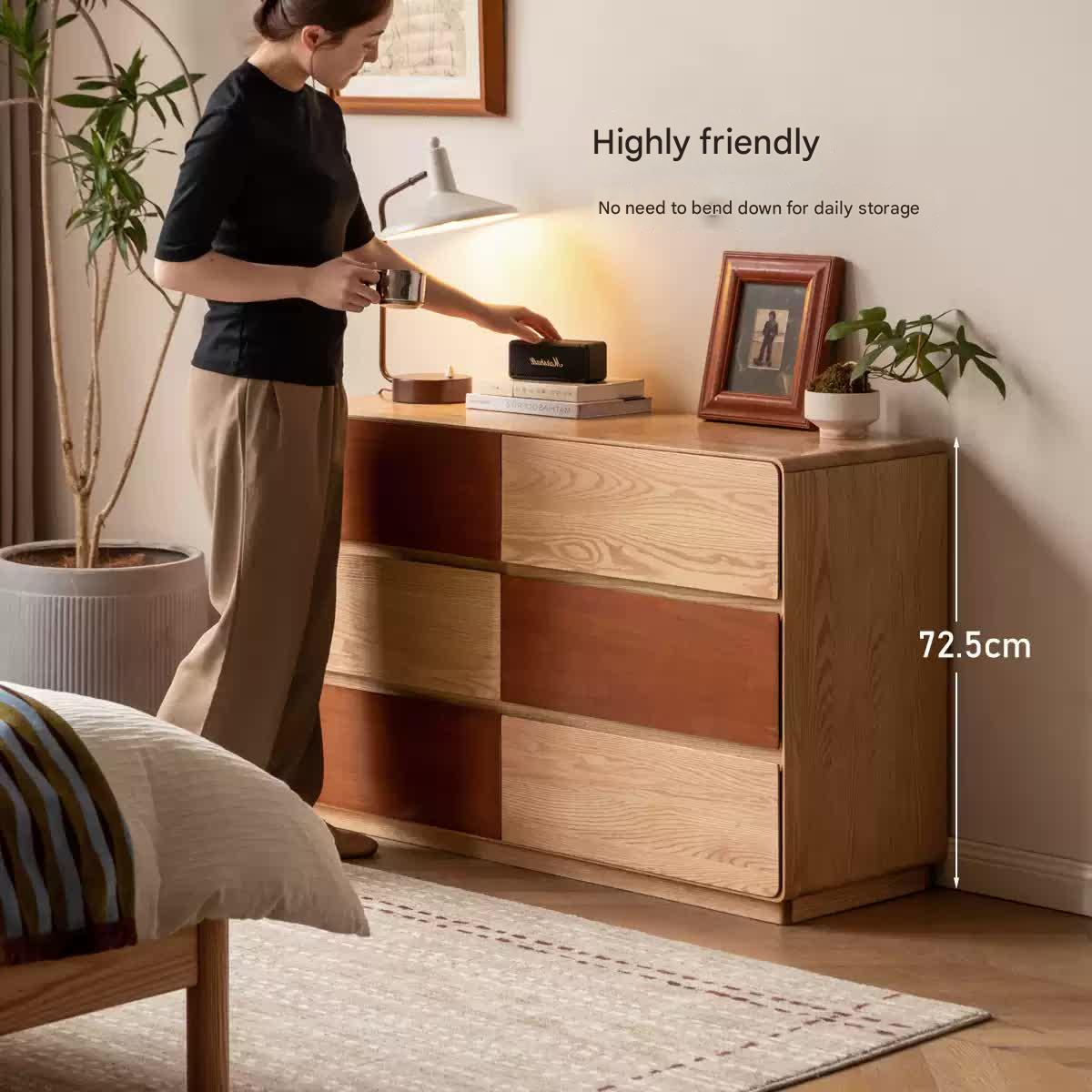Oak Solid Wood Modern Drawer Cabinet.