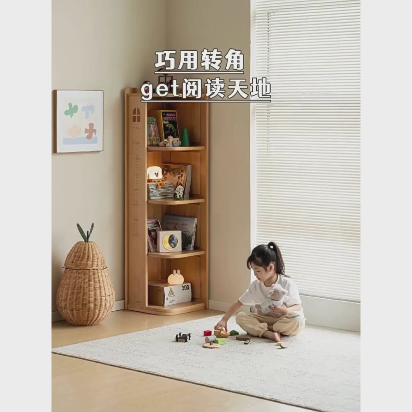Beech Solid Wood Children's Bookshelf Storage Corner Cabinet