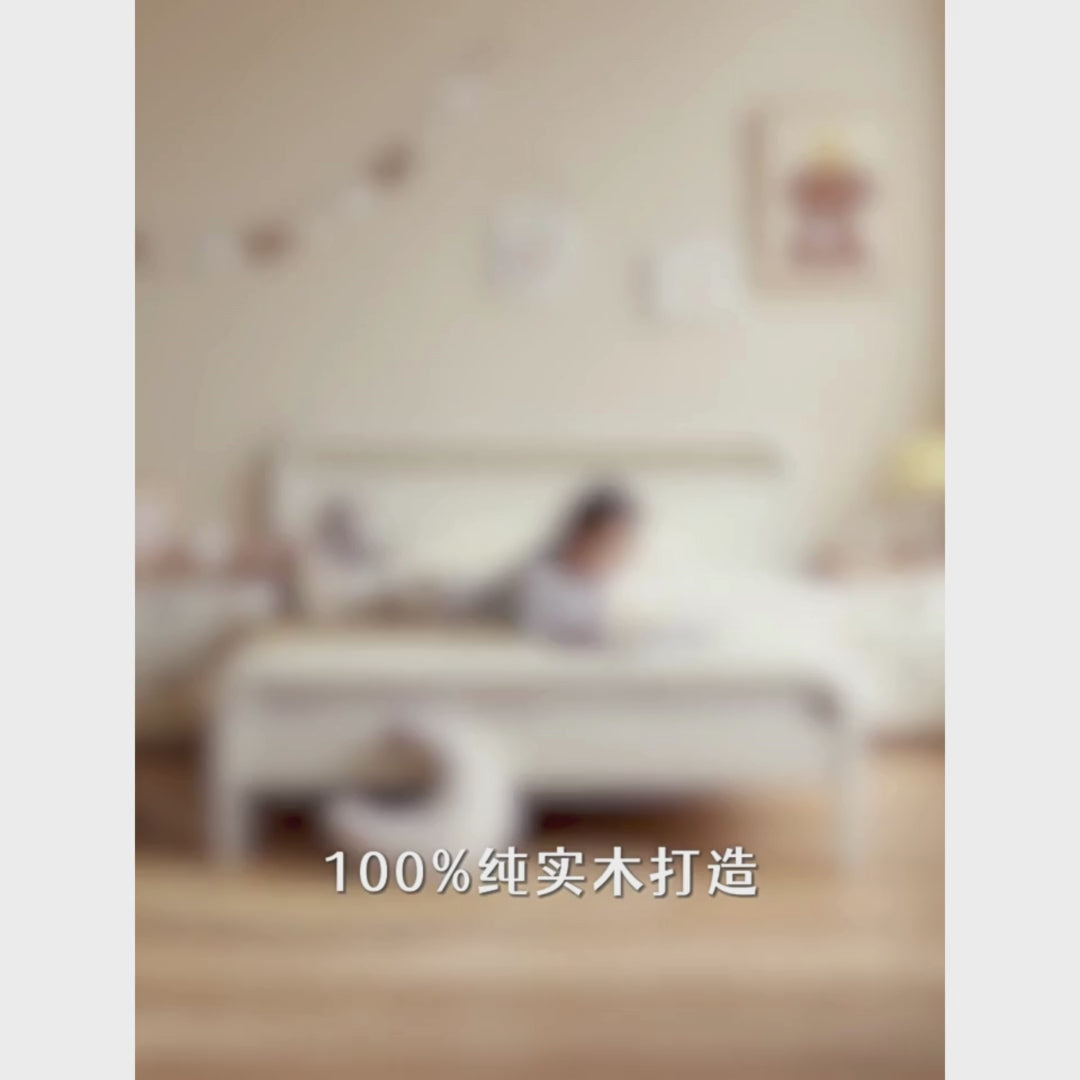 ① Made of 100% pure solid wood, painted with environmentally friendly water- based paint, the exterior and interior are the same, protecting healthy sleep! ② Gentle and fresh cream white color, the small space is not cramped ~ ③ The arch-like bed head/foot is round and does not hurt the skin, and is safe for baby to use ~ ④Large bed and soft package models are optional, you can choose as you like