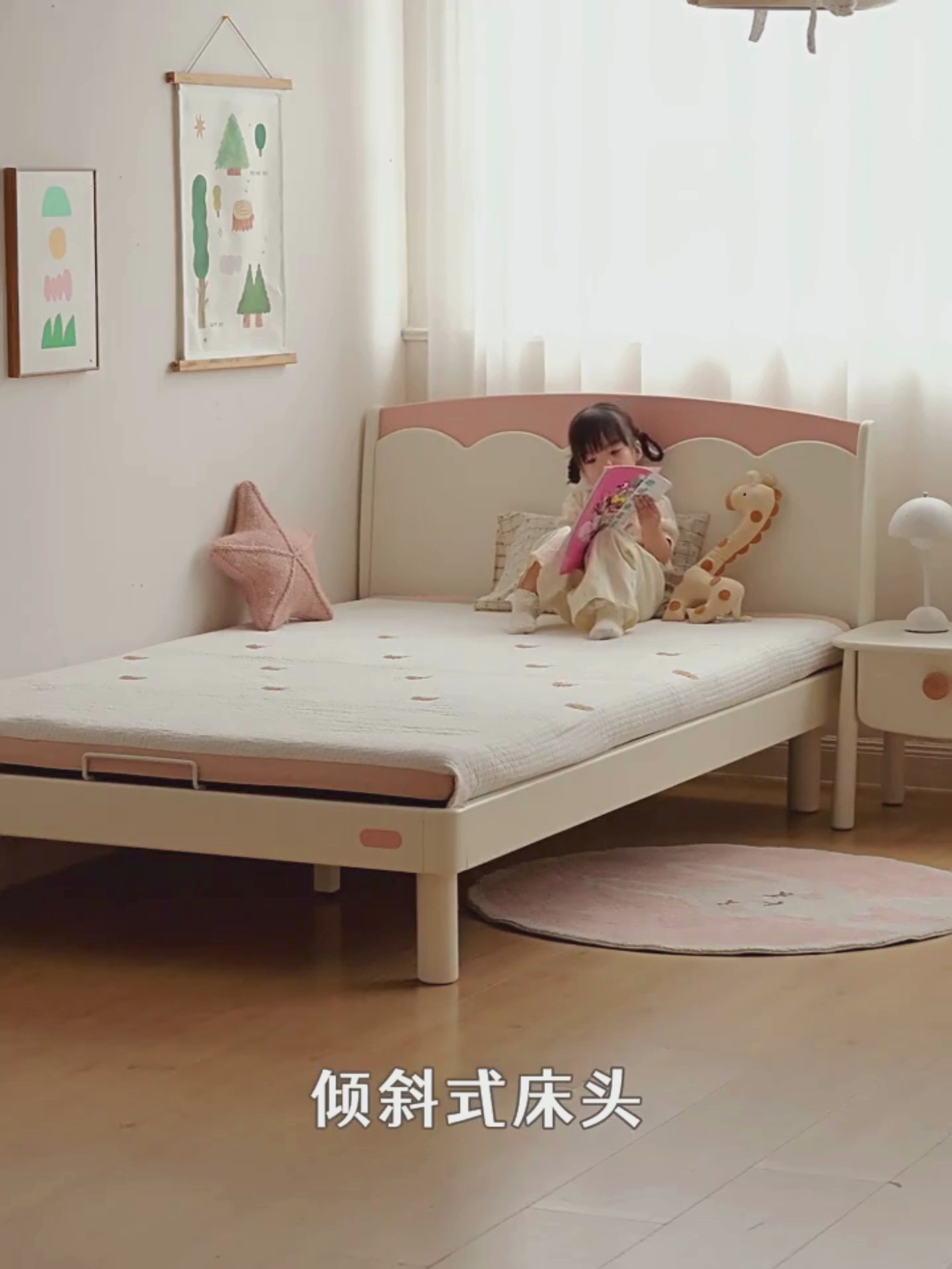 Rubber solid wood children's bed modern minimalist bedroom single bed small apartment cream style girl princess bed