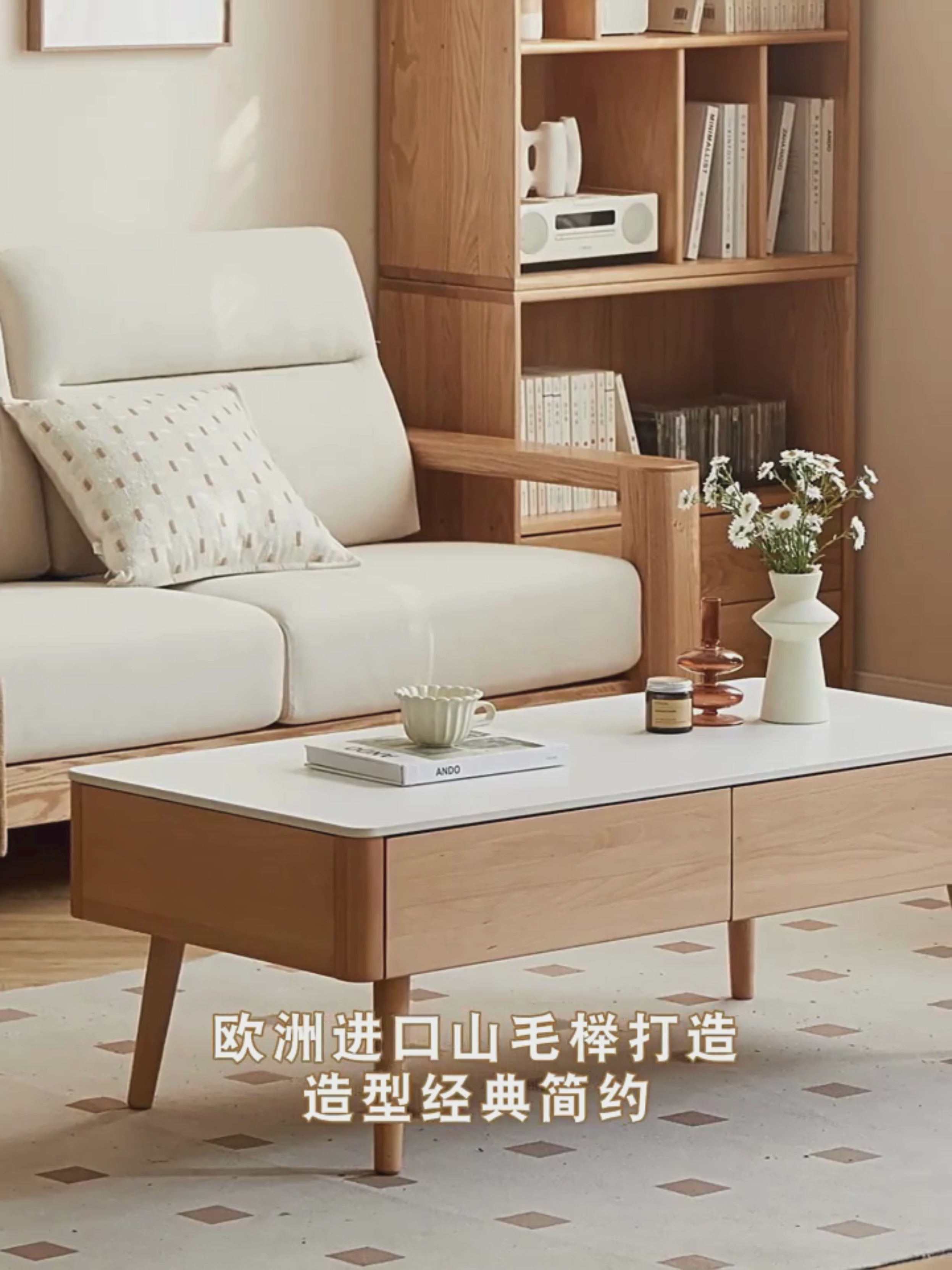 European Beech Solid Wood Storage Rock Board Coffee Table