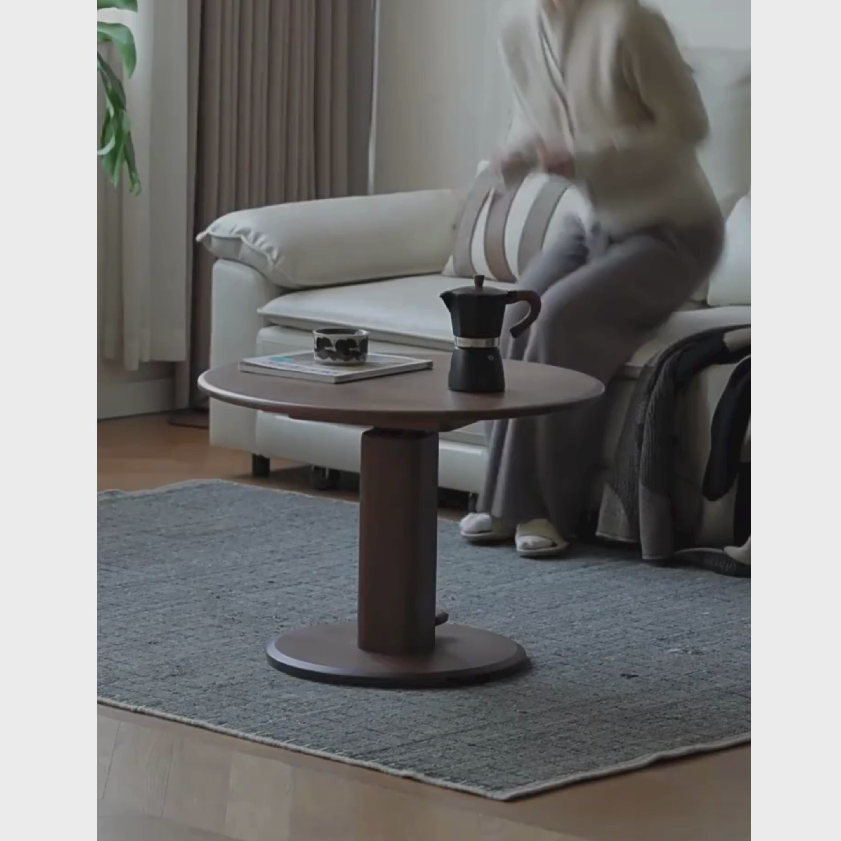 Pneumatic lifting, precious wood, multi-purpose, plug-in-free, wiring-free, FAS-grade black walnut, high-luxury quality coffee table, small dining table, leisure table...+Round reinforced structure on several sides) No corner movement line, smoother and more stable load-bearing