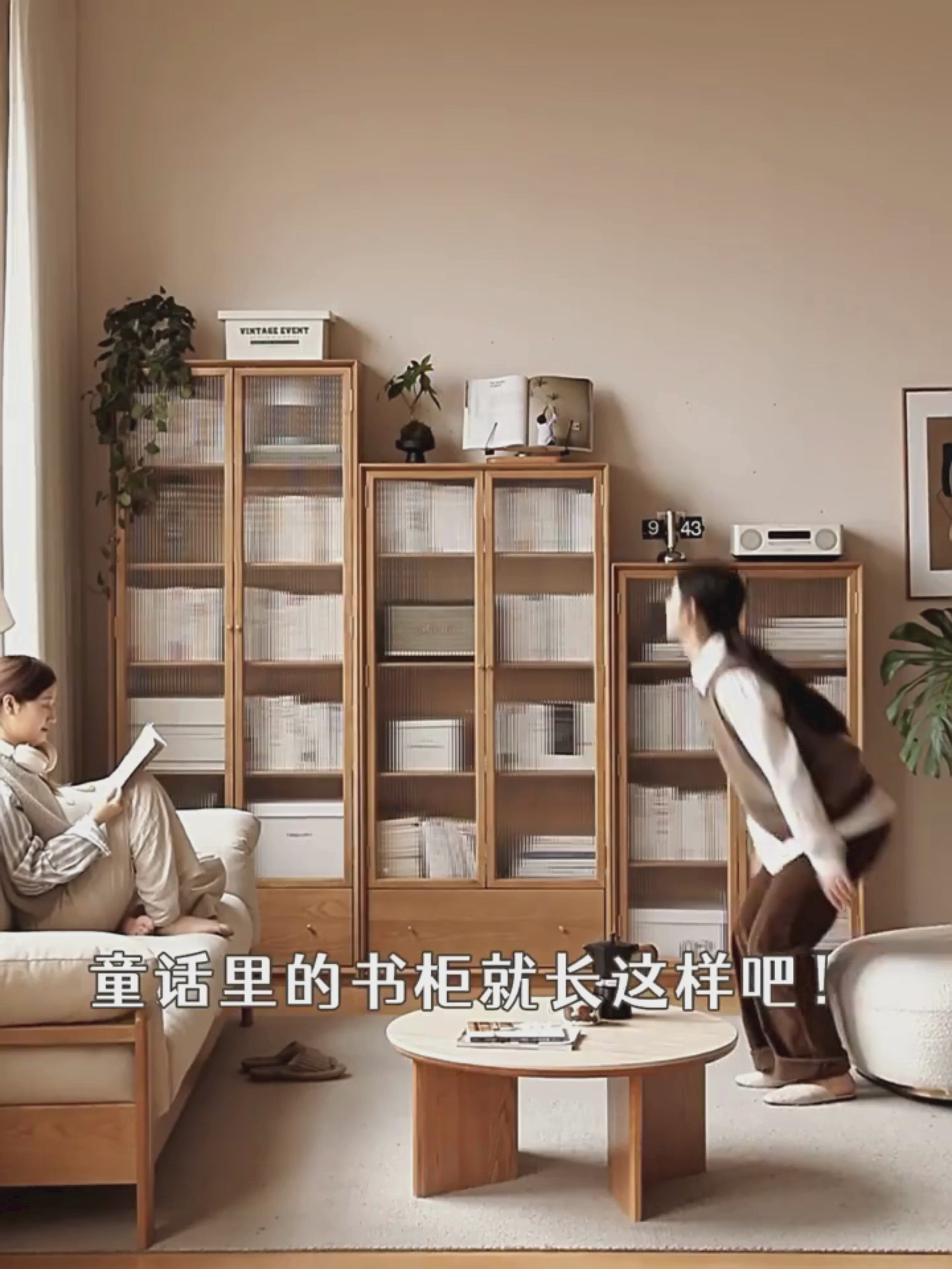 Ash solid wood modern glass floor cabinet.