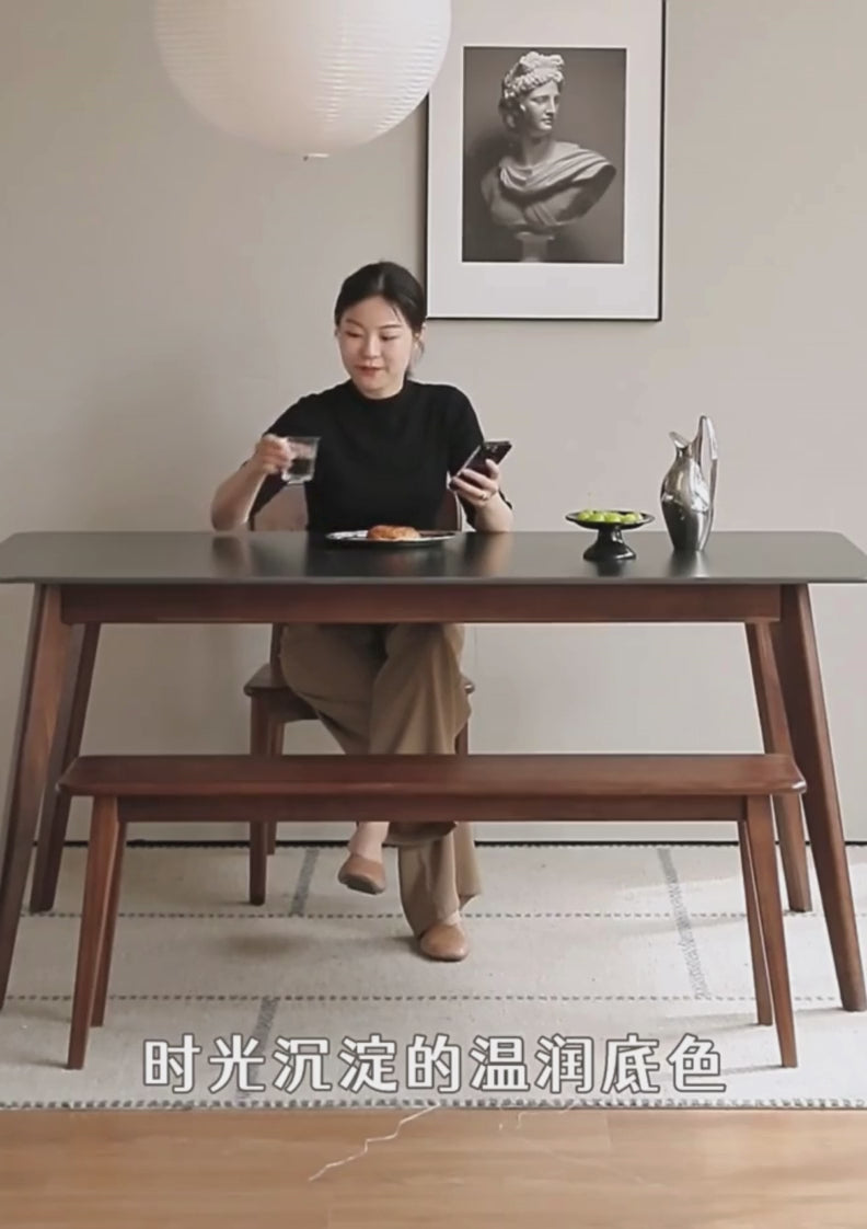 Black Walnut Solid Wood Modern Rock Plate Dining Table
