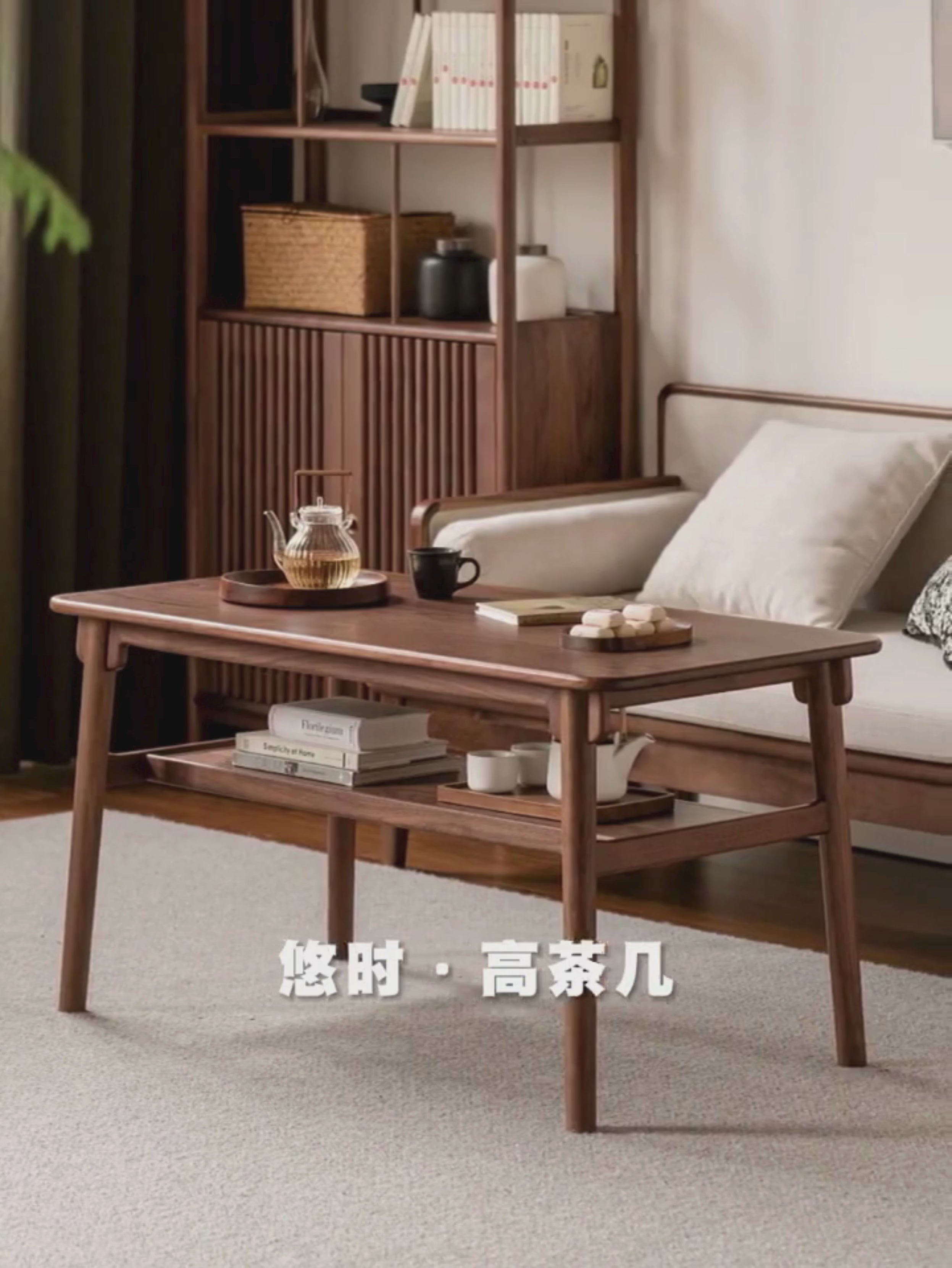 Ash, Black Walnut solid wood double-layer coffee table black walnut tea table household small apartment tea table new Chinese style living room high coffee table