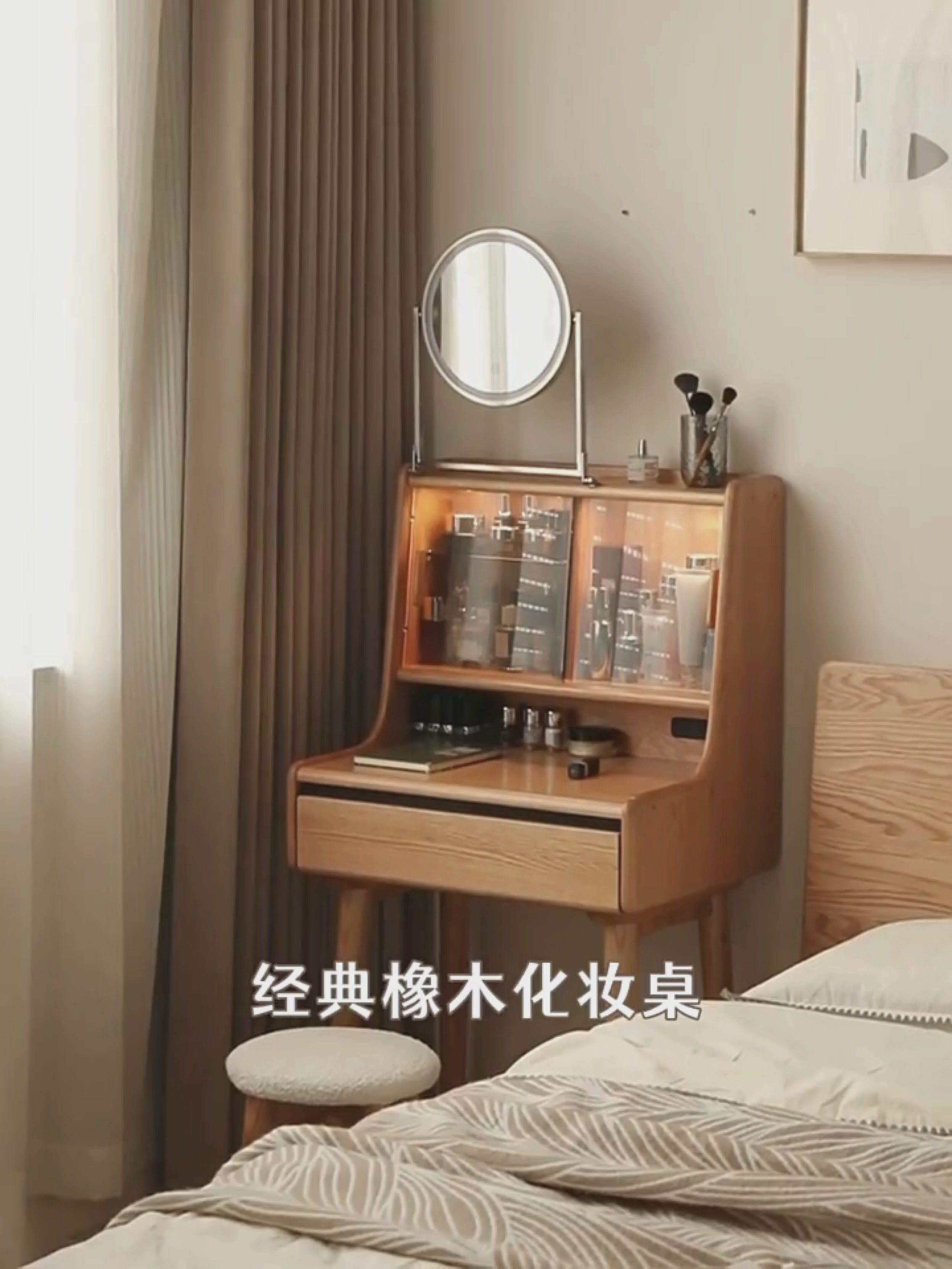 Oak Solid Wood Dressing Table Shelf Integrated.