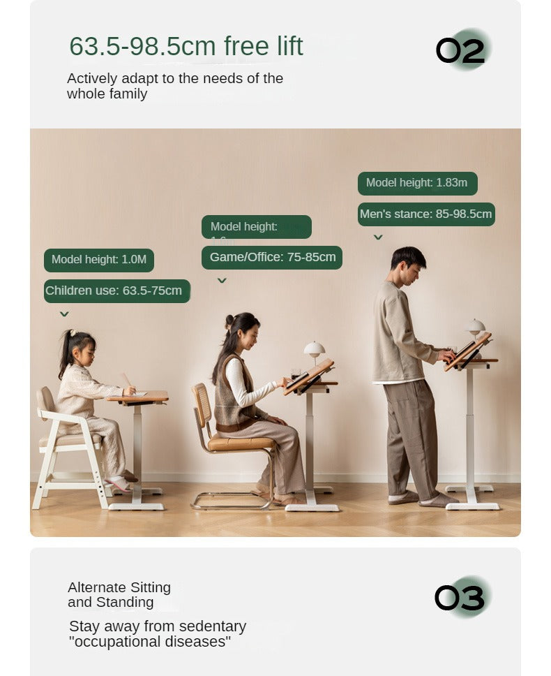 Move + lift + fold The necessary artifact for the house to realize the freedom of leveling © one-click stepless lifting!Say goodbye to sedentary hazards (2) Can be moved without electricity! Silky universal wheel 3 universal N table! Realize office/drama/dry rice at one table, aviation-grade cold-rolled steel legs! Huge stability and strong load-bearing (5) small desktop, big action!Whole board/flap optional