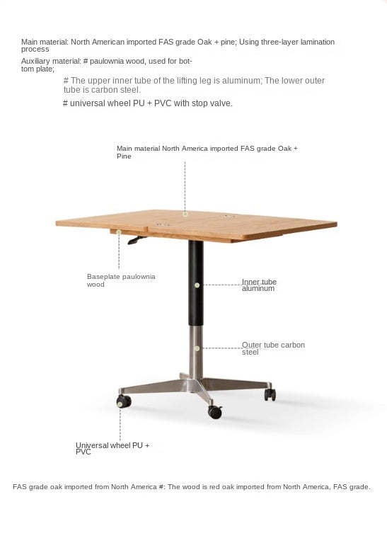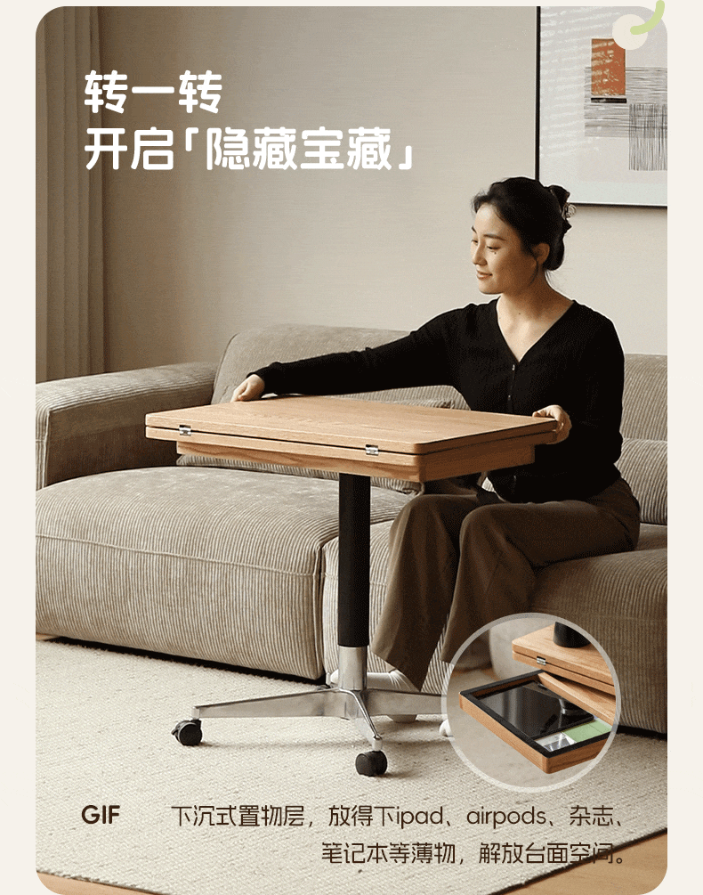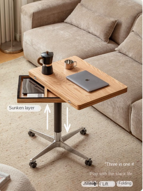 Black Walnut, Oak Solid Wood Lifting Modern Mobile Coffee Table.
