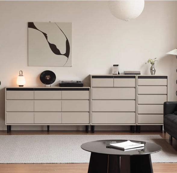 The elegant and stylish combination of drawers has a gray texture and tough metal to create a unique high-end sense of orderly storage of sundries at home.