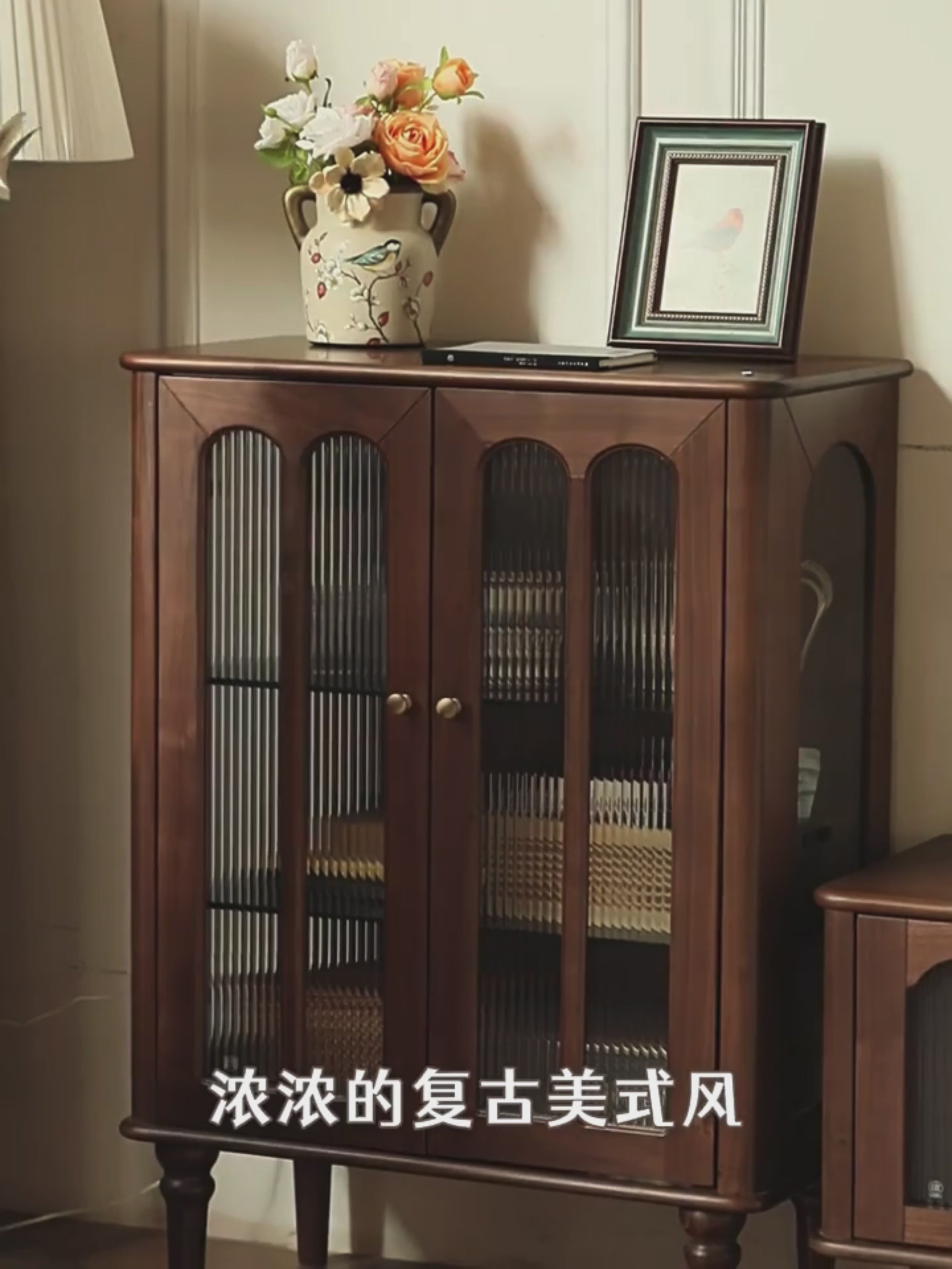 Black Walnut Solid Wood Retro Side Cabinet.