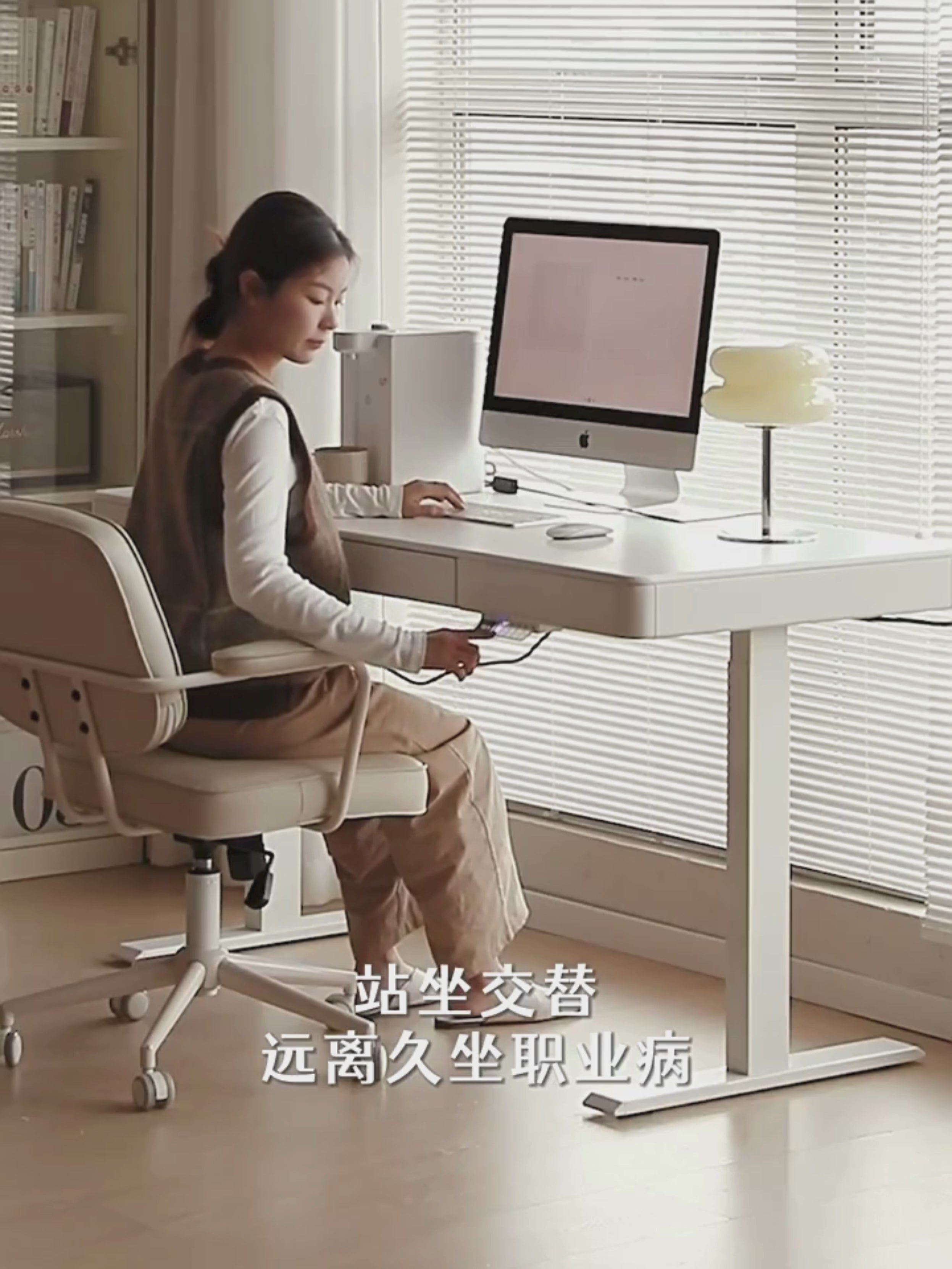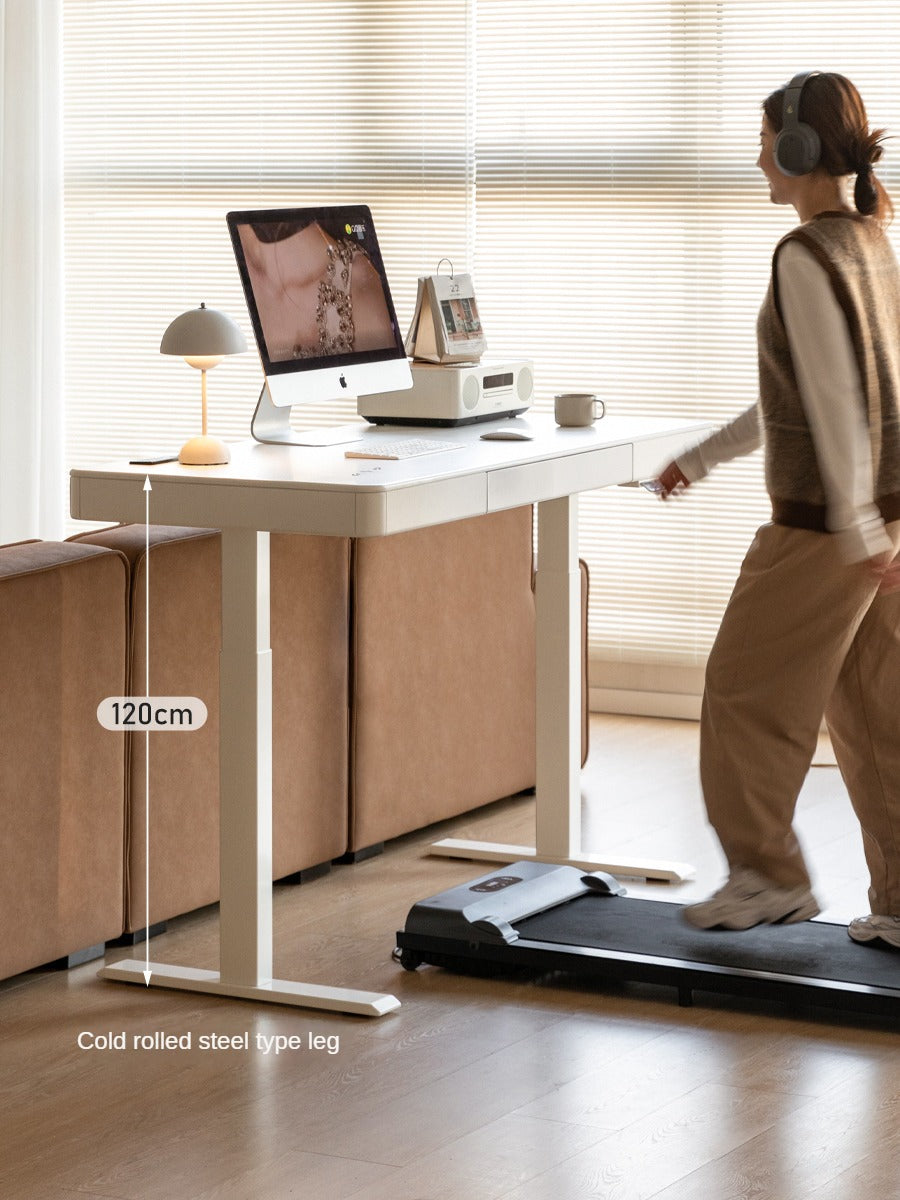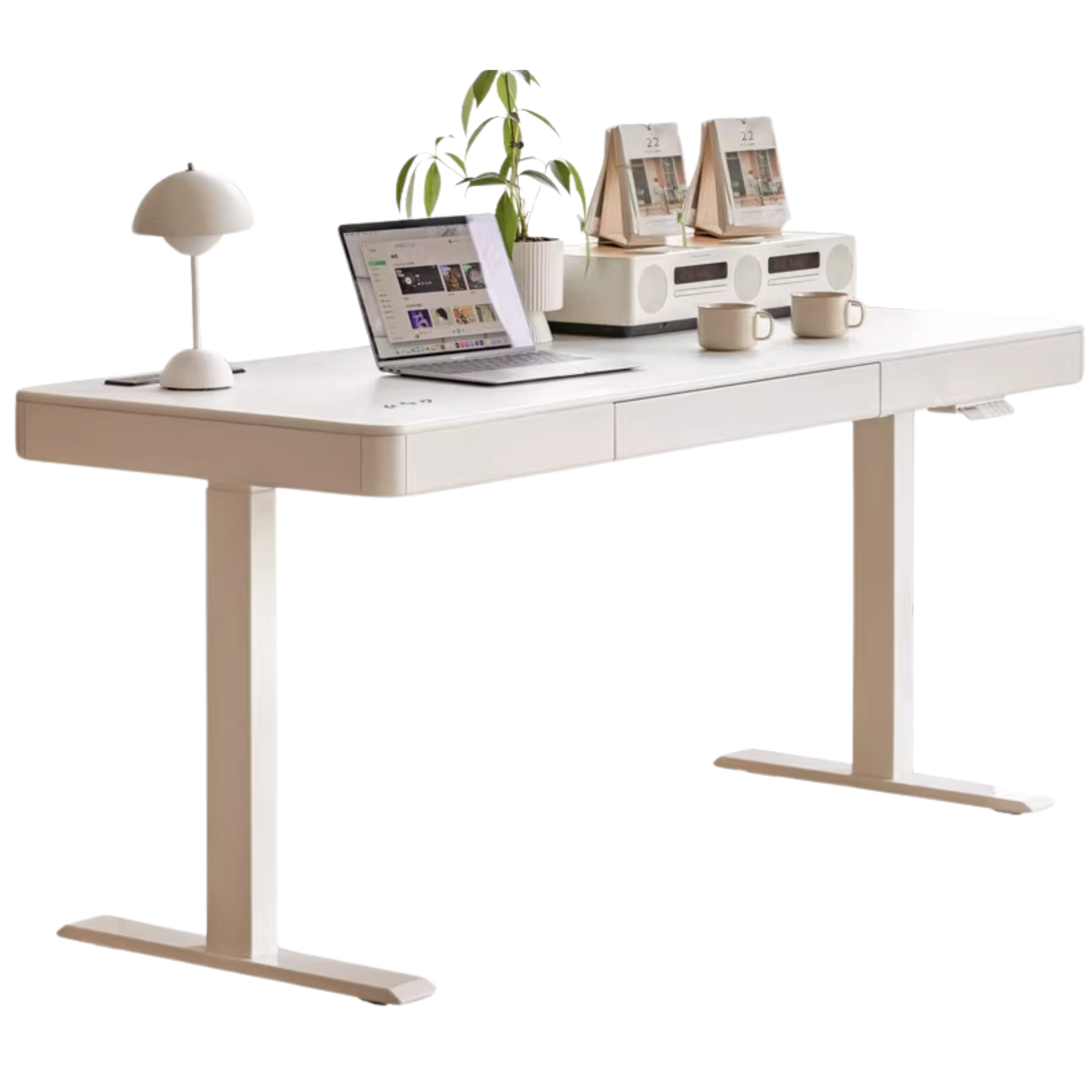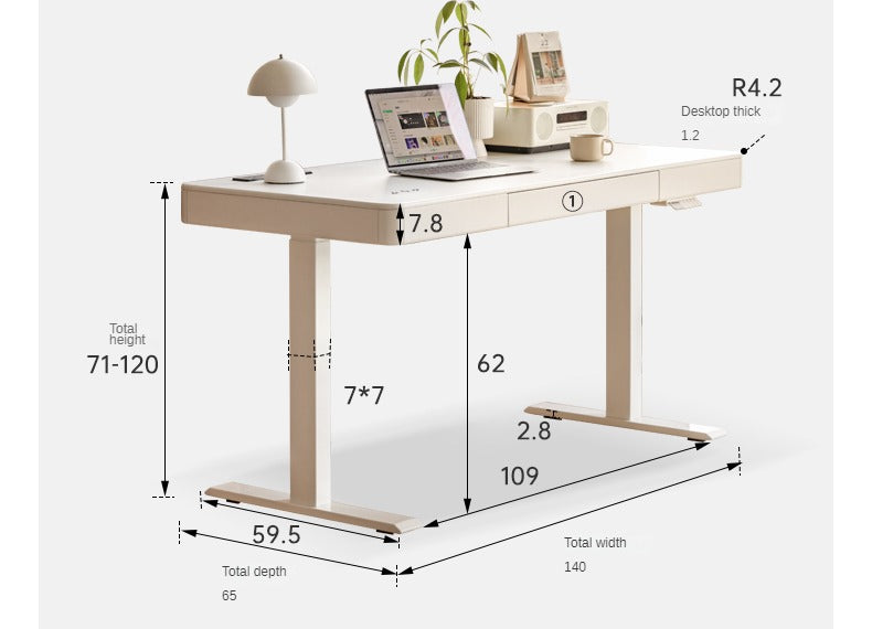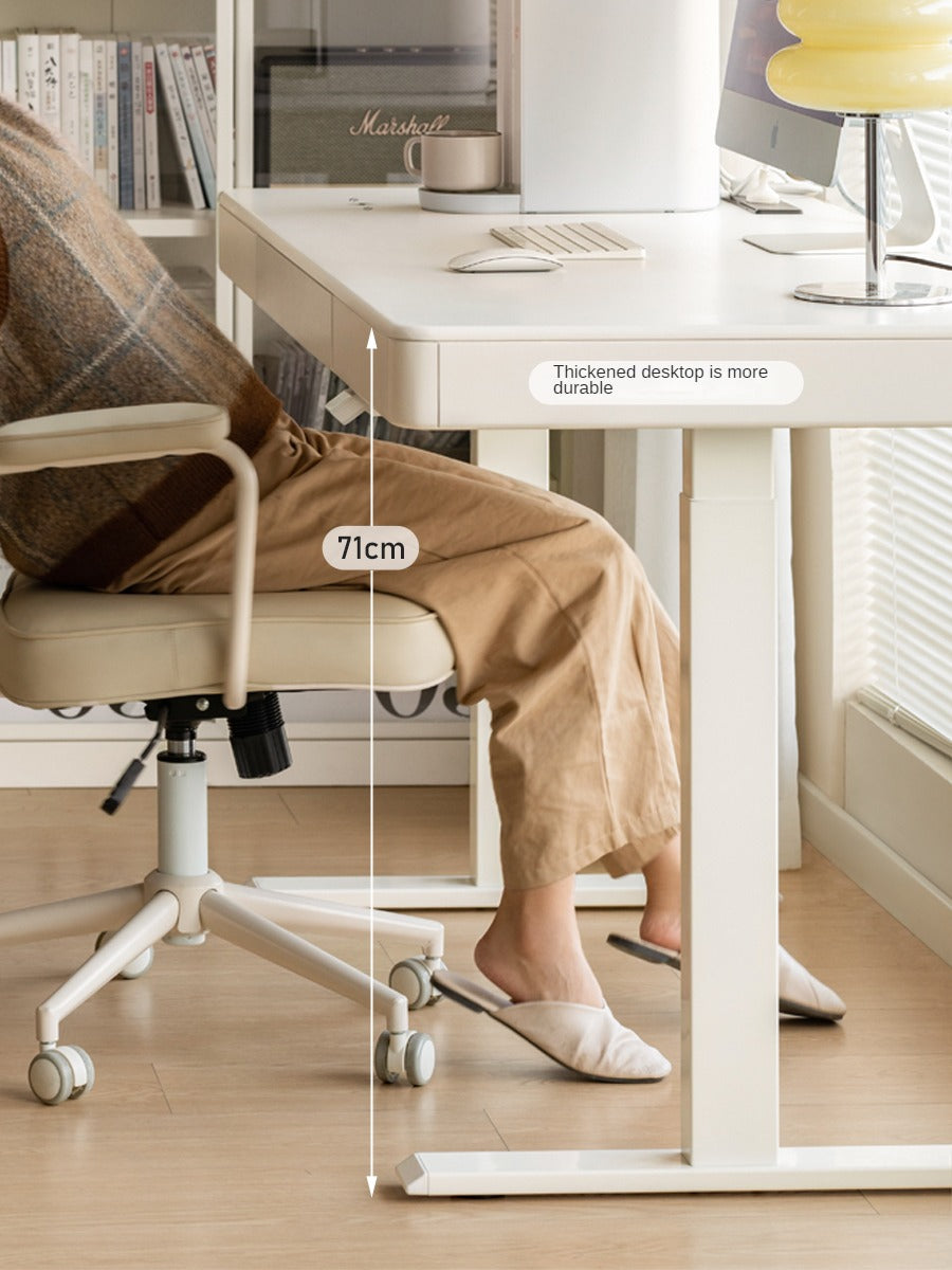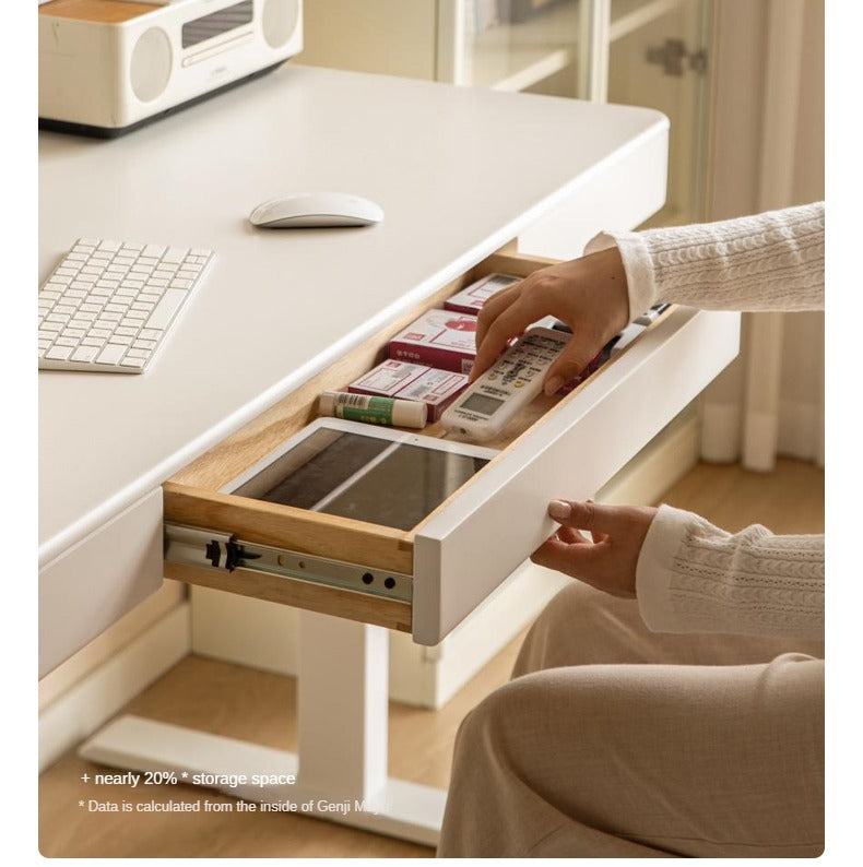 Solid Rubberwood Smart Electric Lift Desk Cream Style