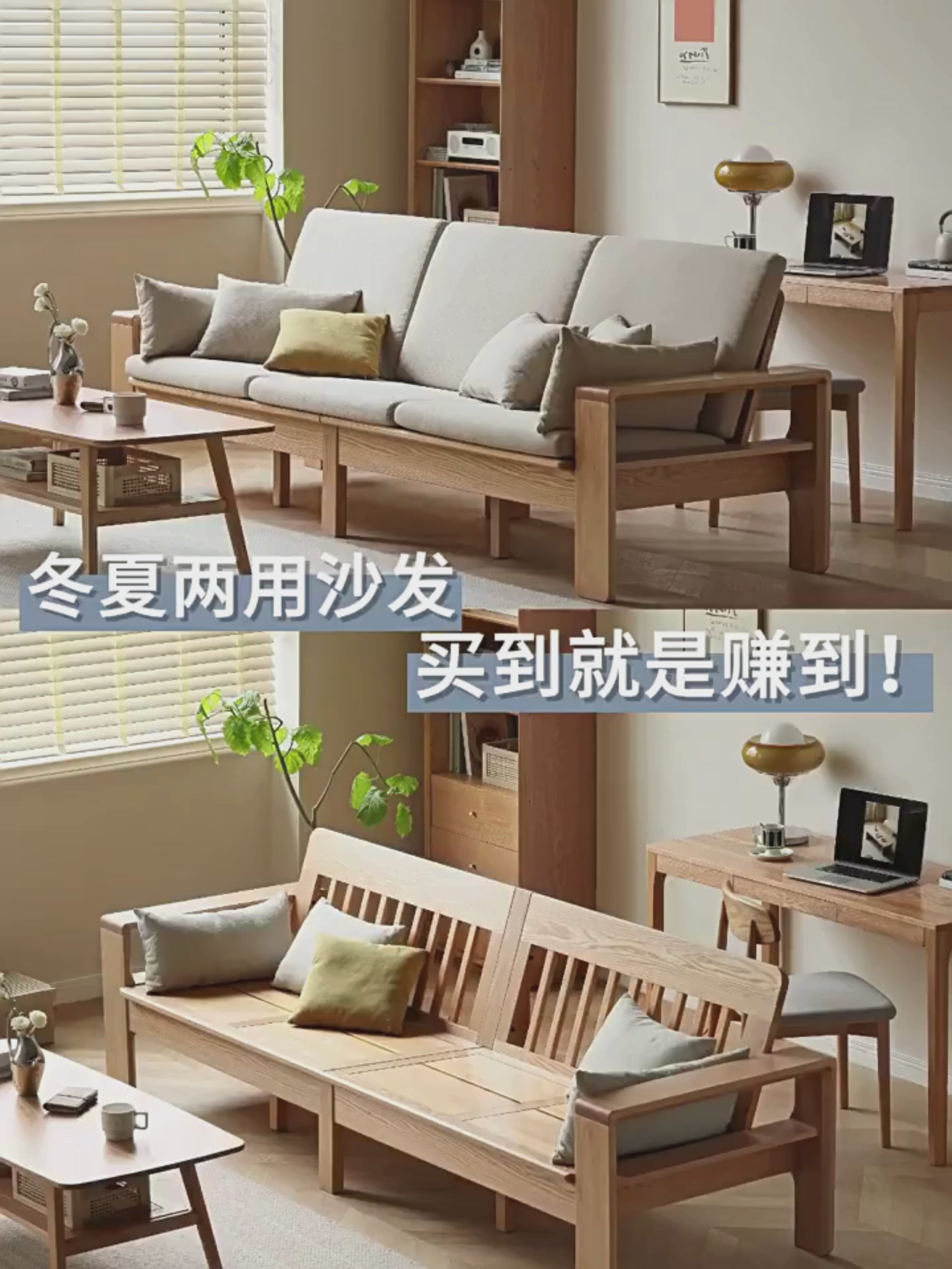 Oak, Ash Solid Wood Modern Nordic Fabric Sofa.