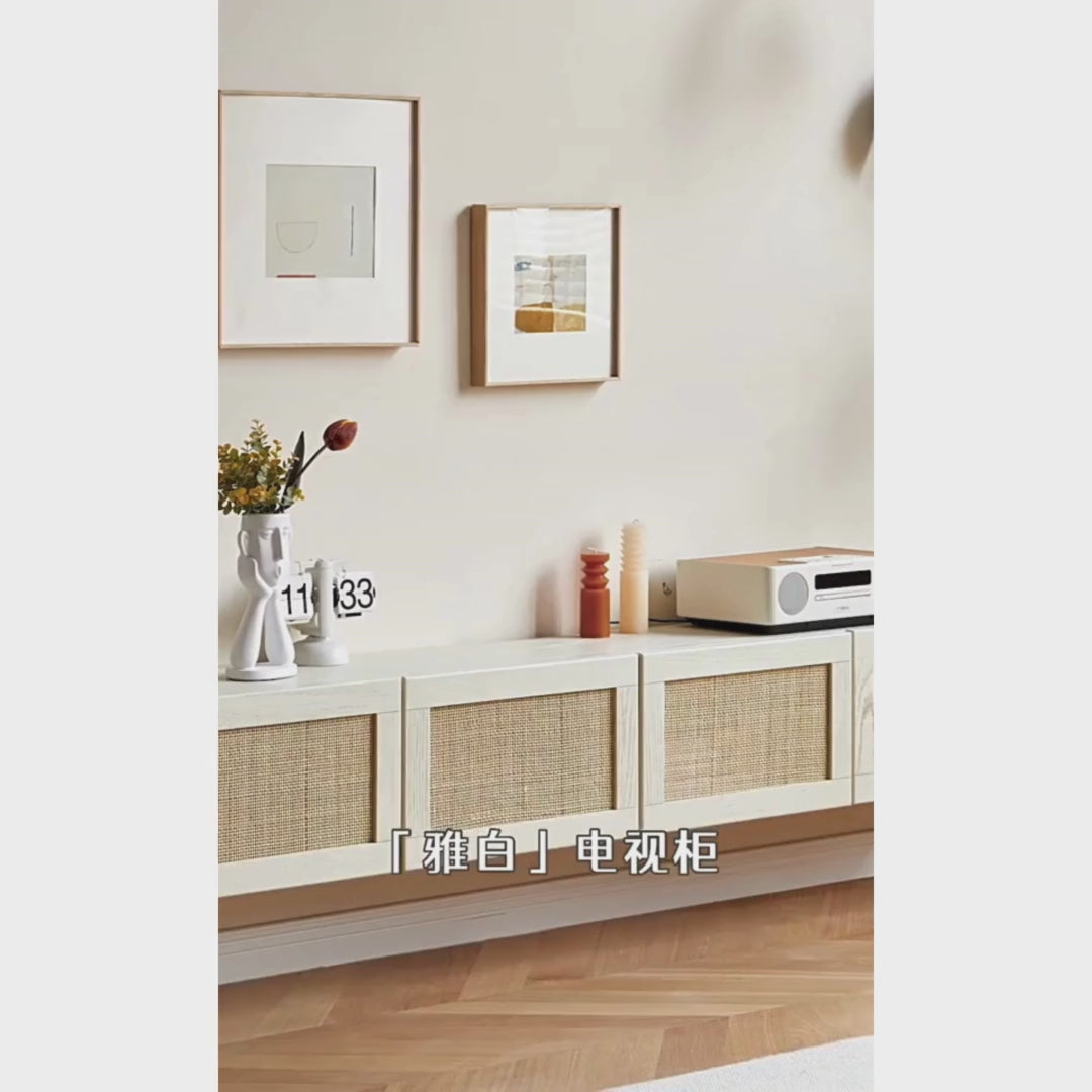 Oak Solid Wood Rattan Suspended TV Cabinet.