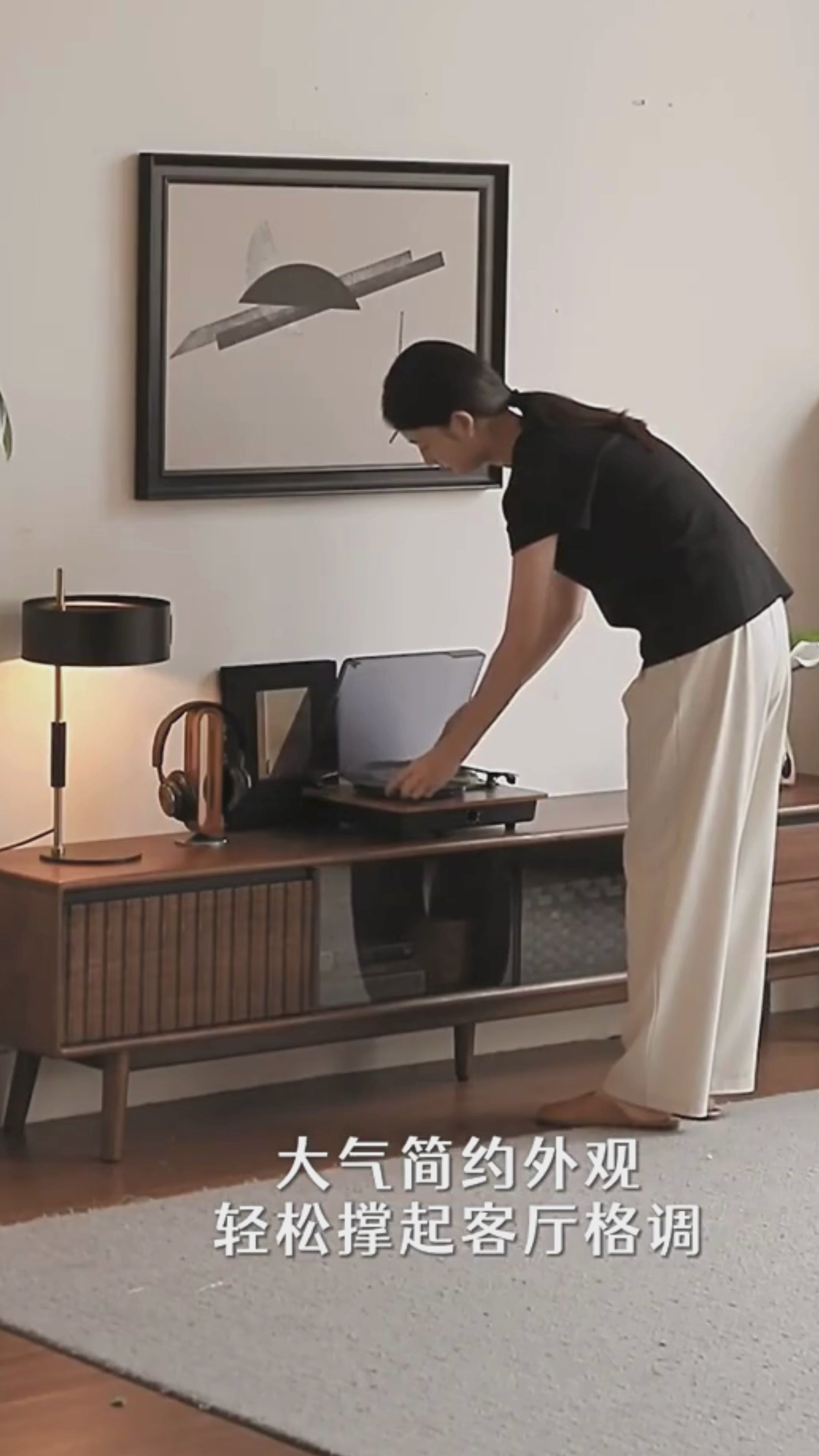 Black Walnut Solid Wood Italian Light Luxury Sliding Door TV Cabinet