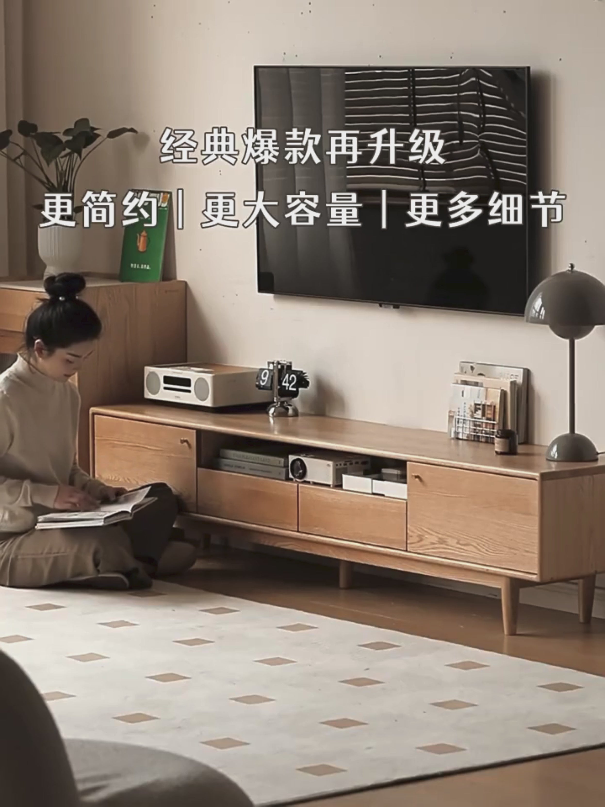 Oak Solid Wood Nordic Floor TV Cabinet.