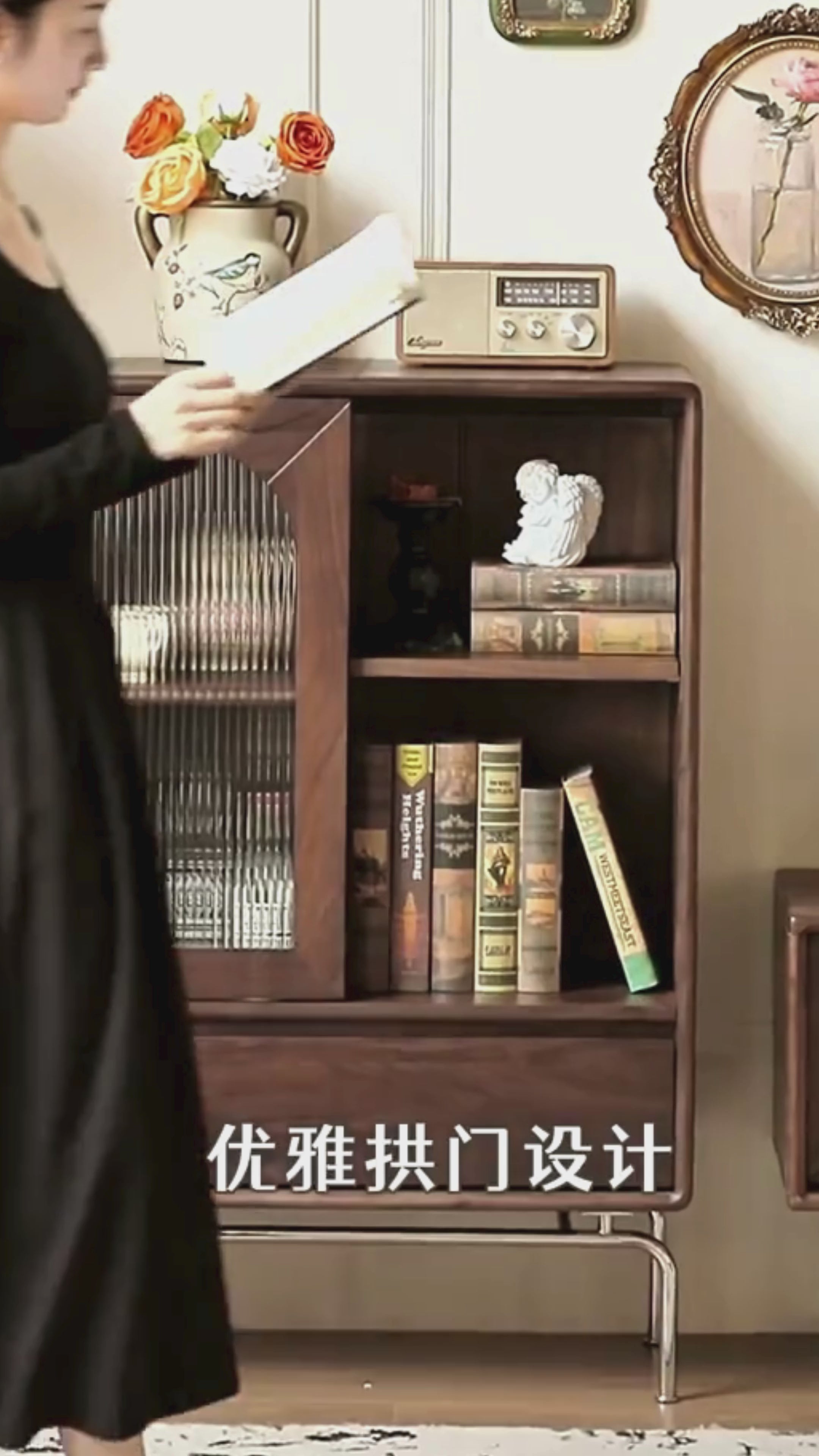 Black Walnut Solid Wood French Retro Side Cabinet.