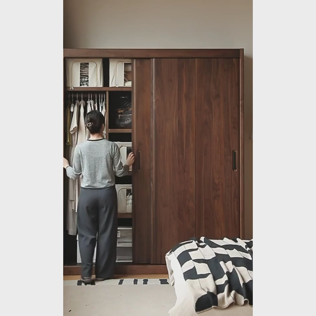 Black Walnut, Golden Sandalwood Solid Wood Wardrobe Sliding Door.