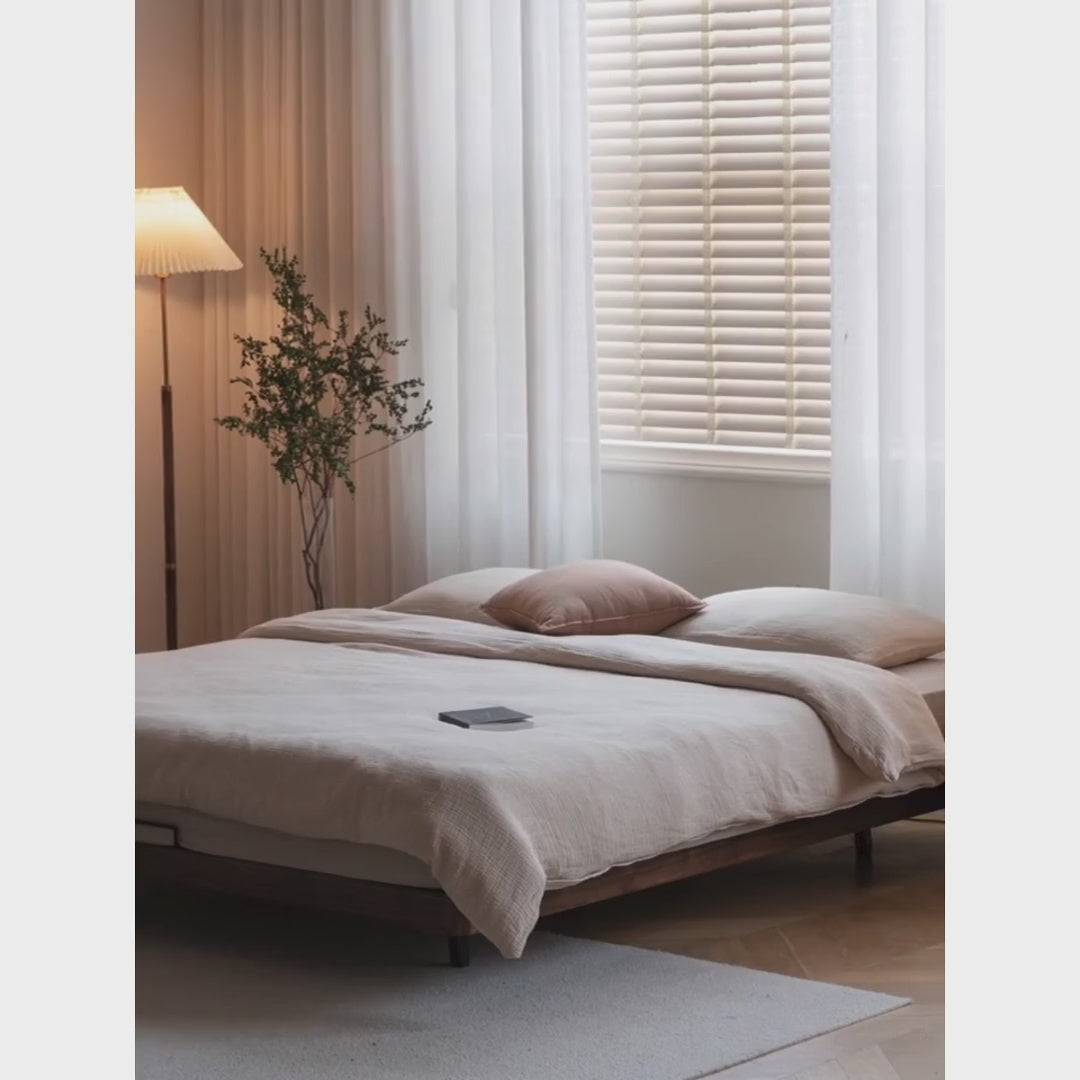 Black Walnut, Oak Solid Wood Suspended Platform Bed, Headboard-Free Bed