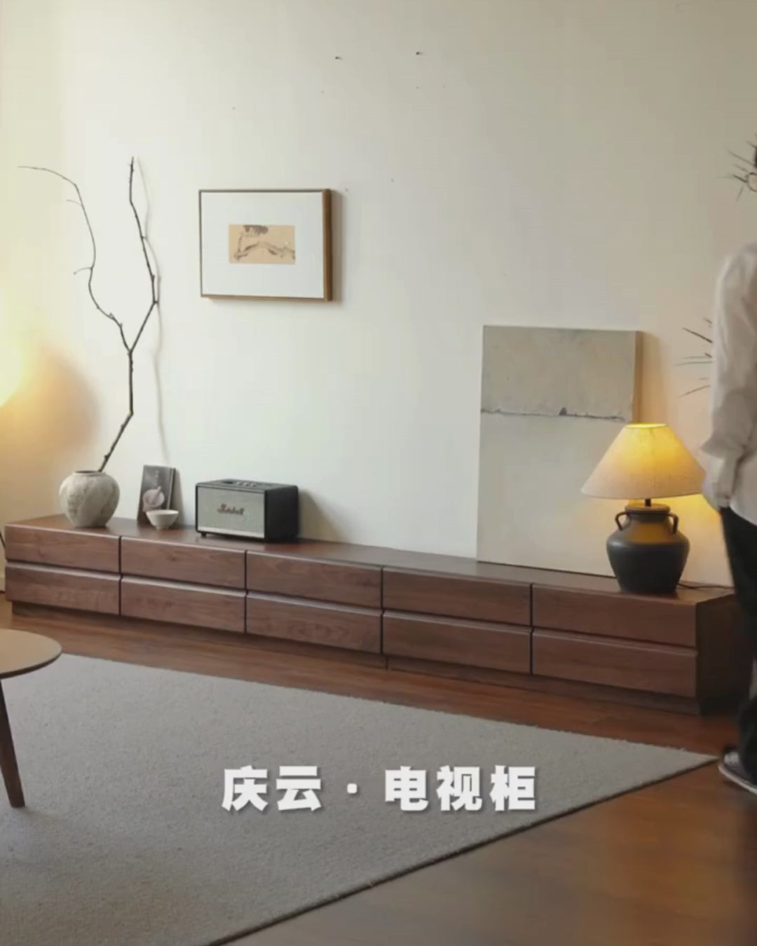 Oak, Black Walnut Solid Wood TV Cabinet.