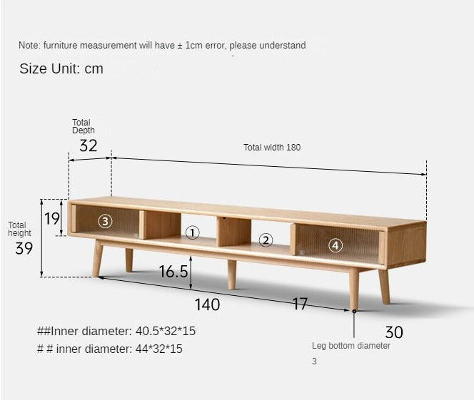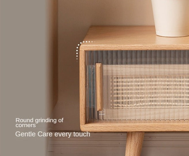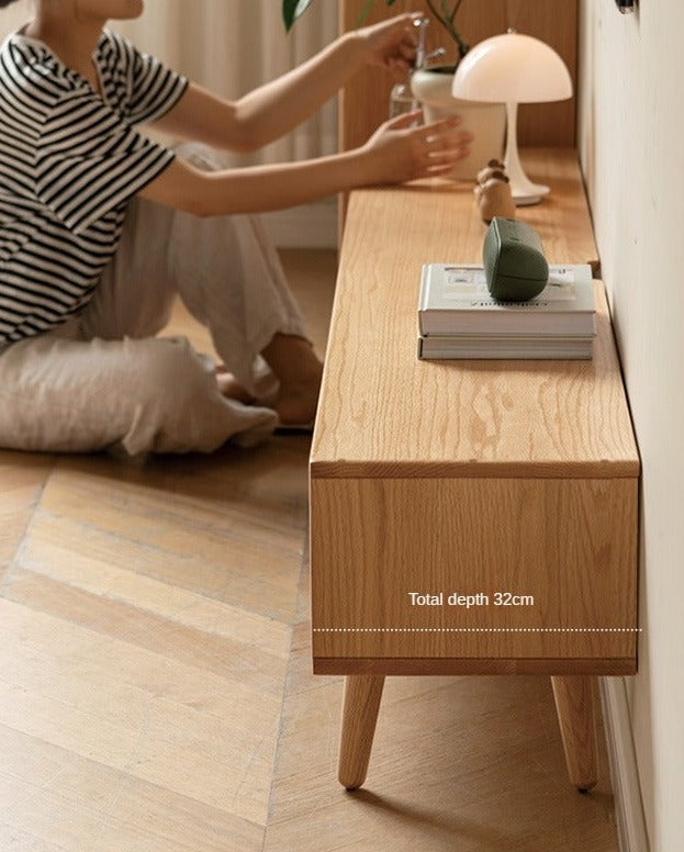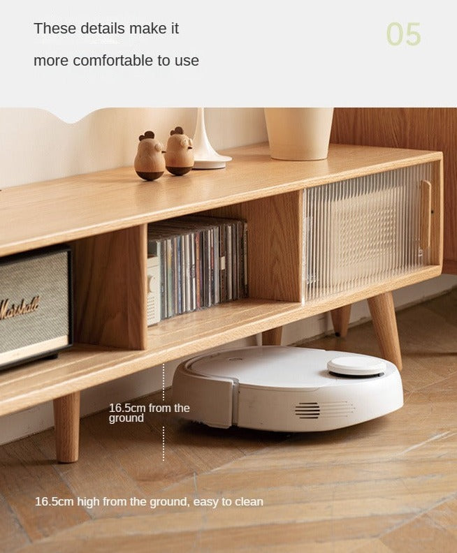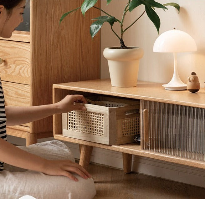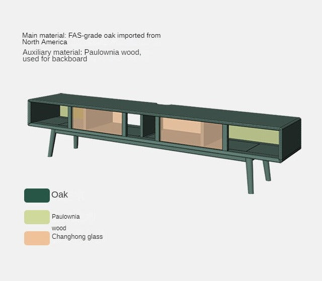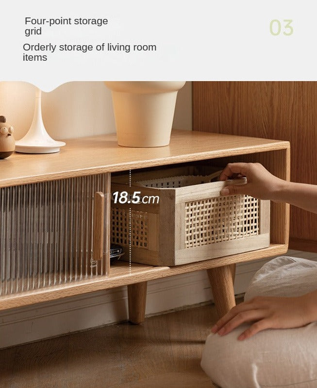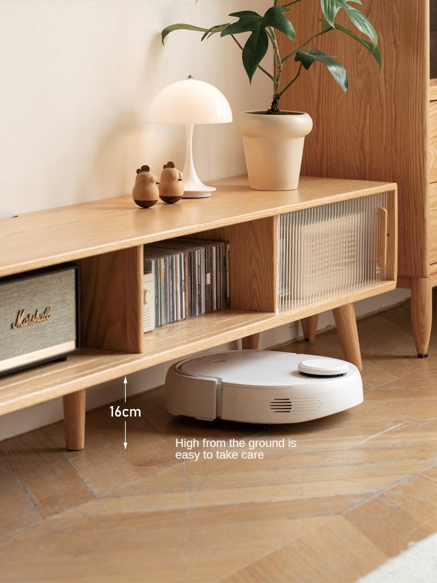 Oak, Rubber Solid wood TV Stand Glass Sliding Door