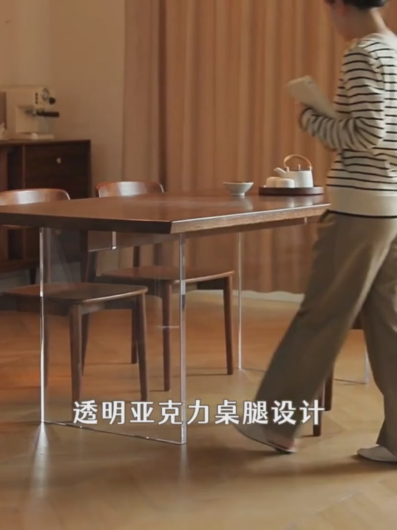 Oak, South American Walnut Solid Wood Acrylic Floating Large Size Dining Table