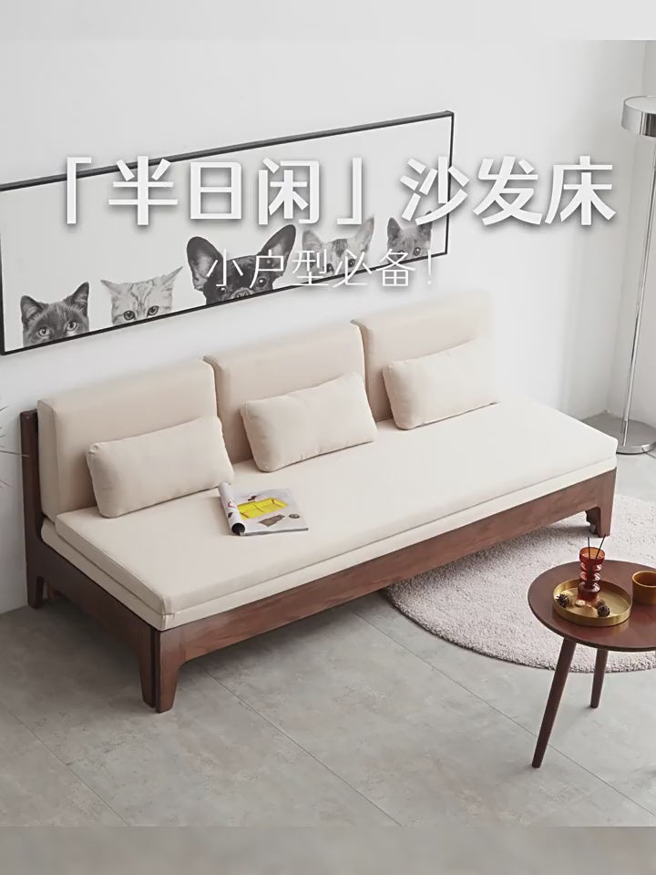 Oak Solid Wood Sofa Bed Dual-purpose Foldable Telescopic Bed.