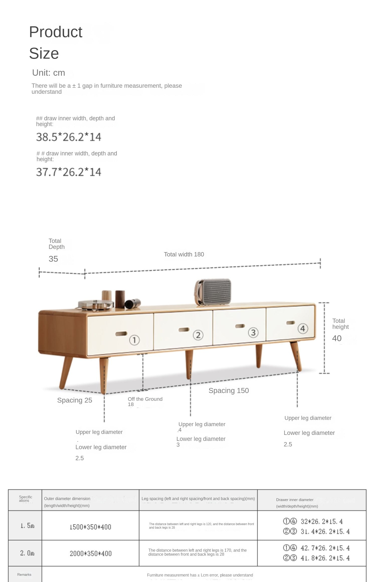 Color: 59.1x13.8x15.8 inch/150x35x40сm/ Natural Wood color/ Full drawer TV cabinet