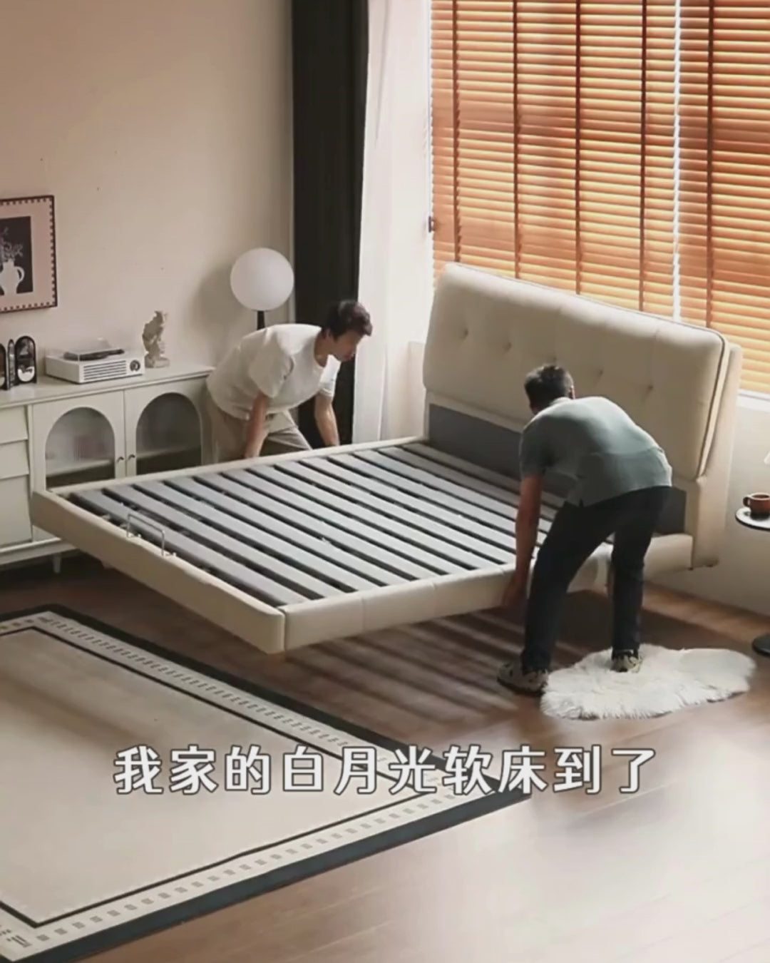 Color: Chrysanthemum White Eco-Cloud Leather Soft bed -Light Strip Style