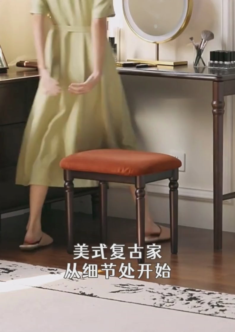 This beech solid wood makeup stool features elegant Rococo-inspired curves, adding a touch of 18th-century charm to your space. Its retro design is perfect for creating a stylish makeup area.