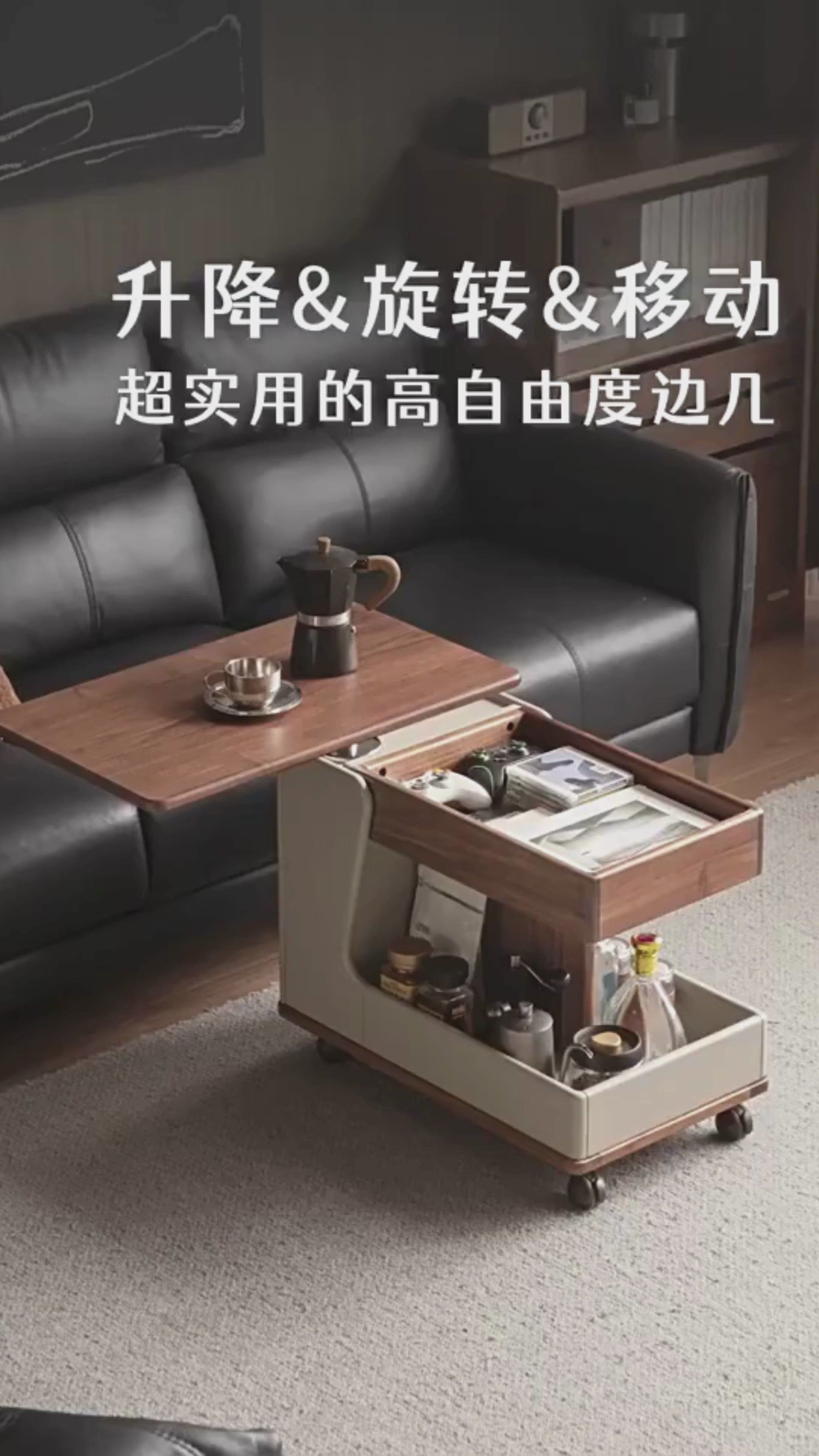 Black Walnut Solid Wood Liftable Rotating Mobile Side Table