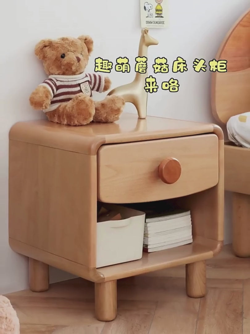 15.8x13.8x15.8 inch (40x35x40сm) Soft and cute cabinet, cute and childlike with round head and round brain is decorated with round cherry wood handles, which is more cute and childlike; it can be matched with the mushroom bed of the same series