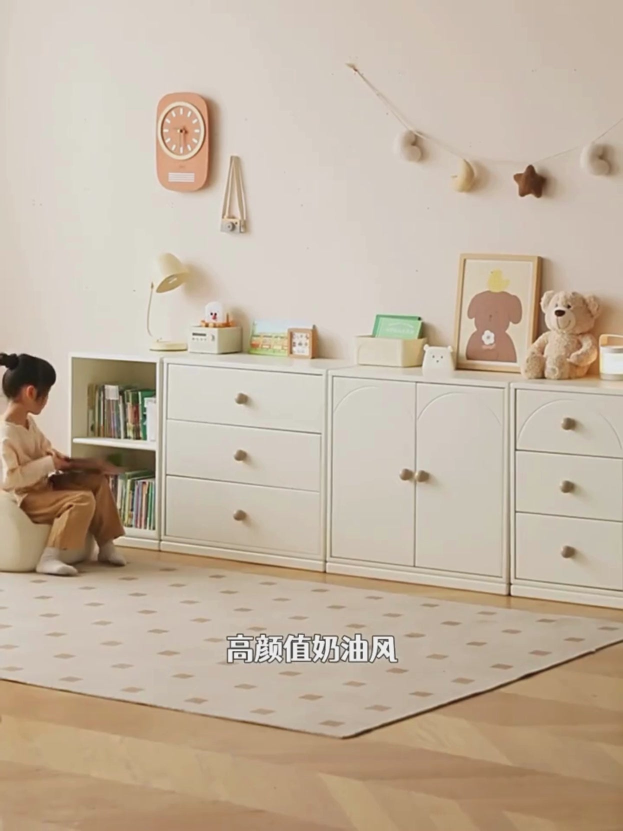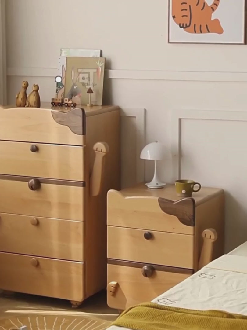 Beech Solid Wood Kids Chest of Drawers -Type Toy Storage Cabinet