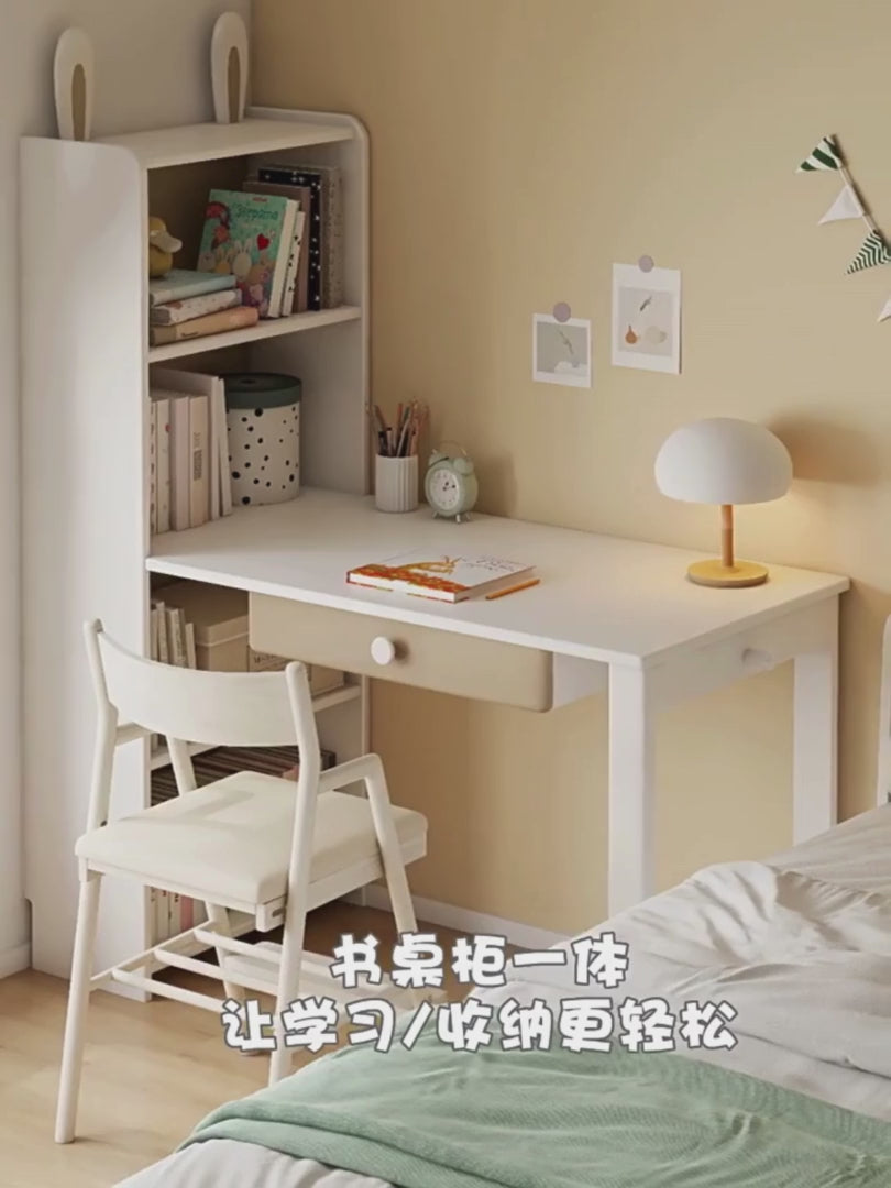 The desk and cabinet are integrated to make learning/storage easier The 60cm wide desktop, with side open cabinets, can not only extend the desktop space, but also make it easy for children to reach for books and focus on learning at the moment!