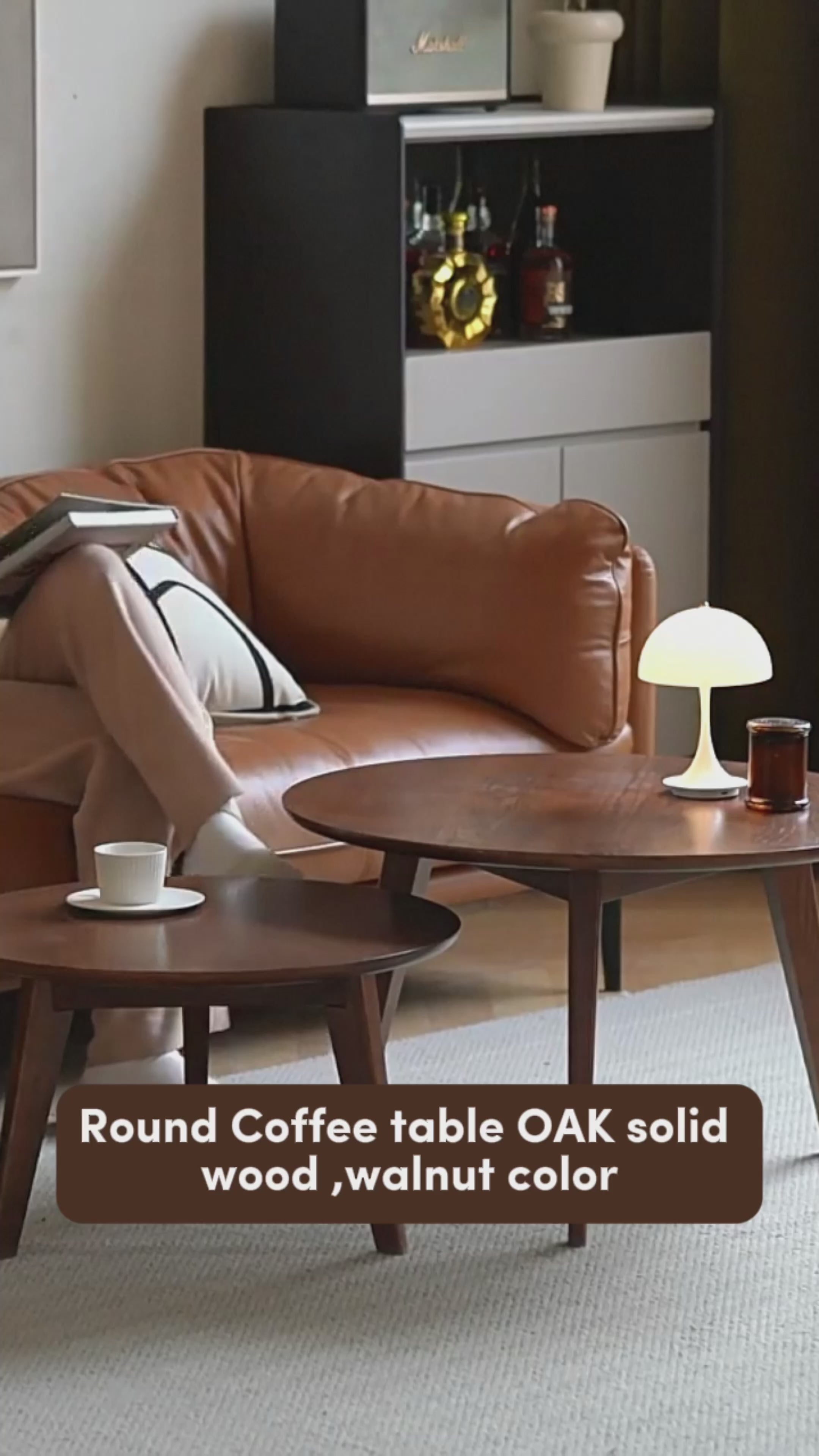 Oak, Solid Rubberwood Round Coffee Table, Walnut color