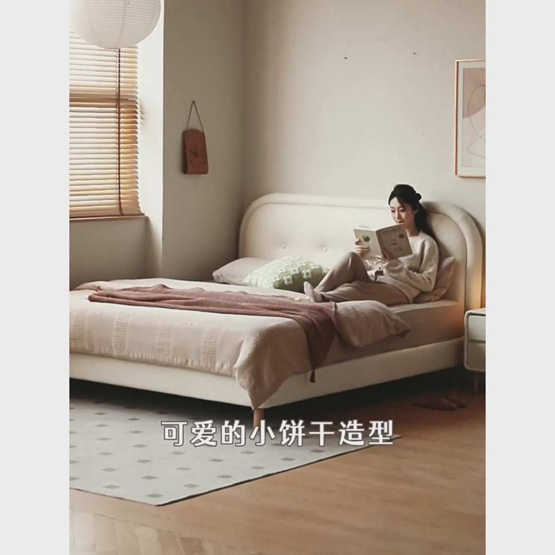 2. The fabric is organic leather——milk white; the fabric on the back of the bed is cool cloth——not removable and washable!