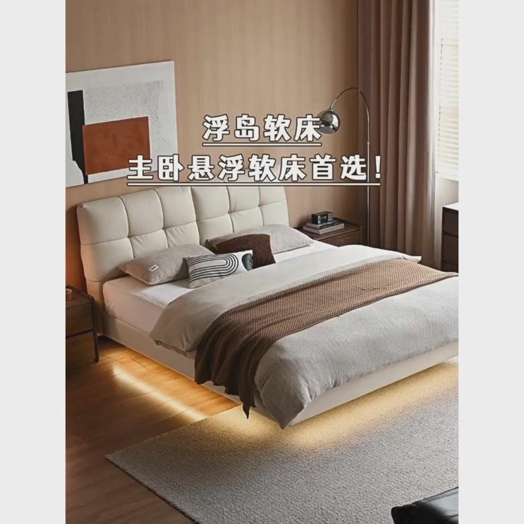 Genuine Leather Top Layer Cowhide Soft Suspension Bed with Lighting