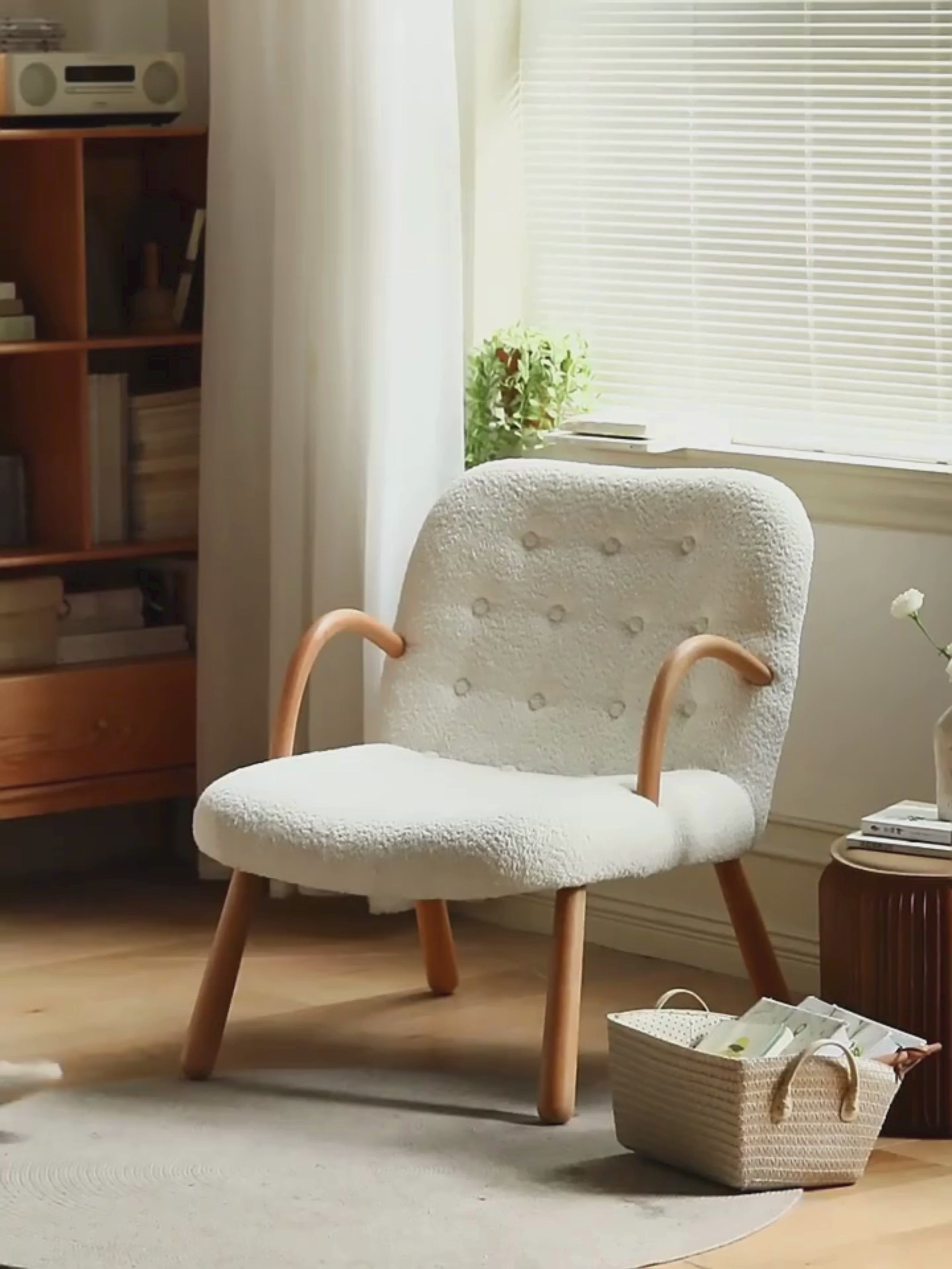 Beech Solid Wood Lamb Velvet Alpaca White Armchair)