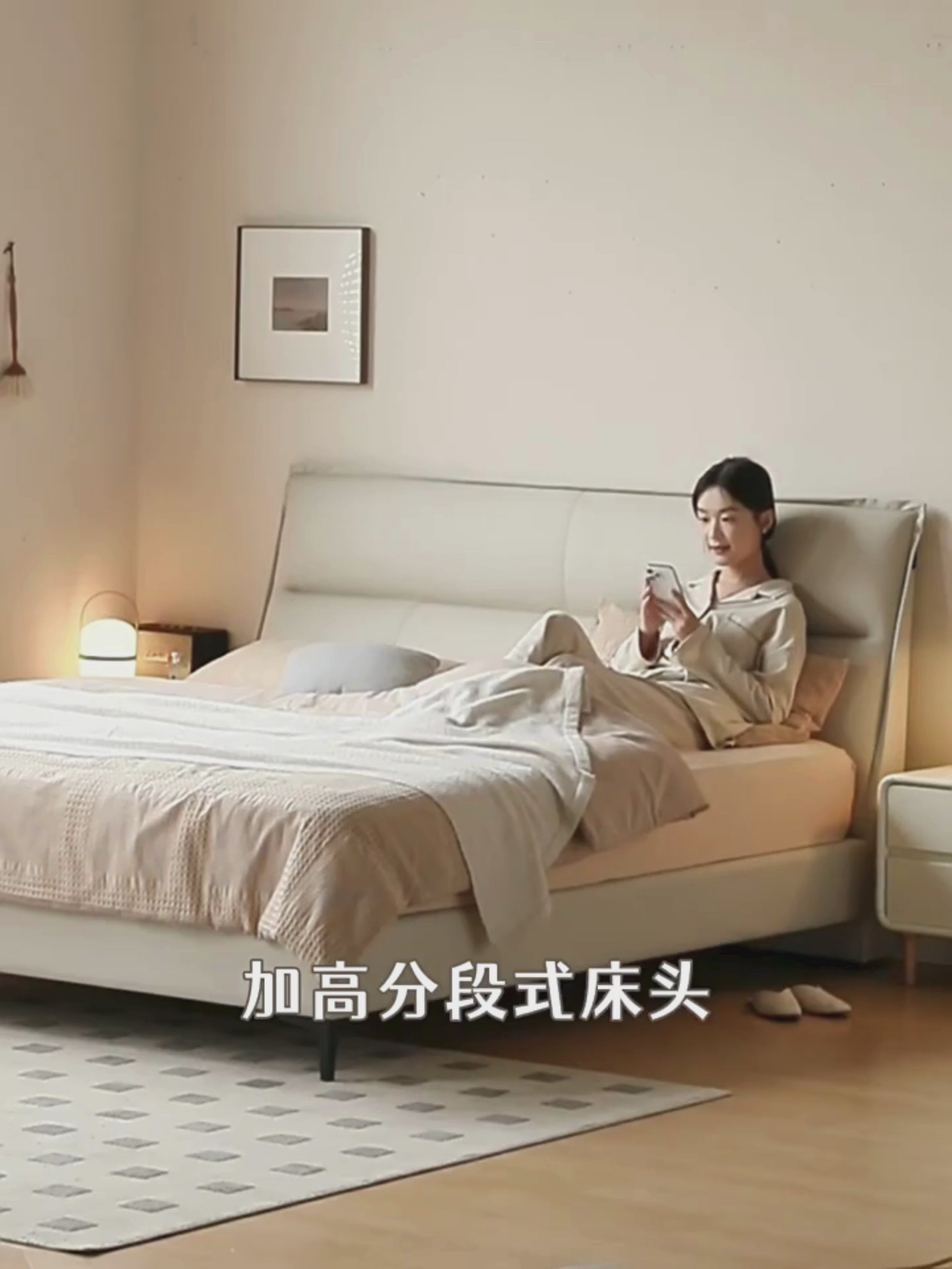 Genuine Leather Bed Cream First Layer Cowhide High Backrest Bed
