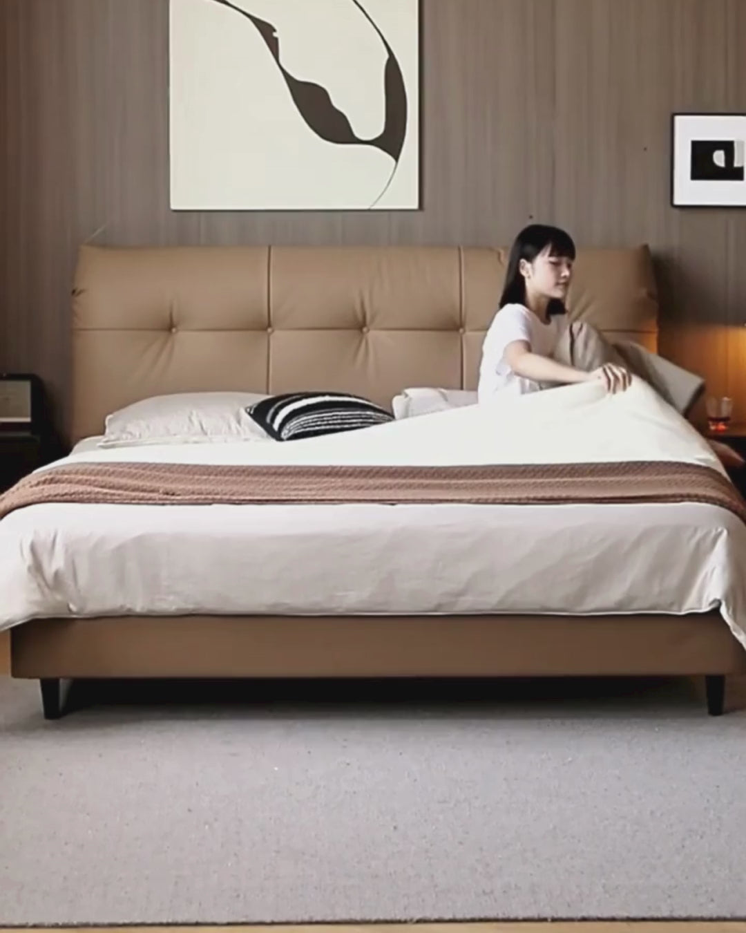 First Layer of Yellow Cowhide High Back Bed Light Luxury