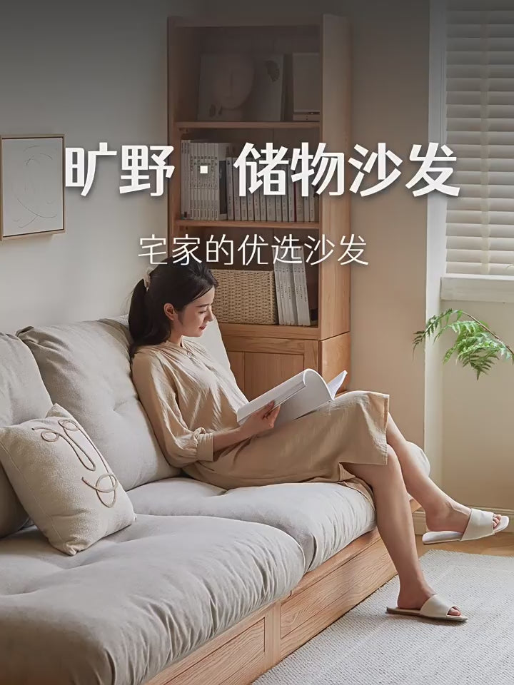 Oak Solid Wood Gravel White Cotton Linen Storage dual-use Sofa
