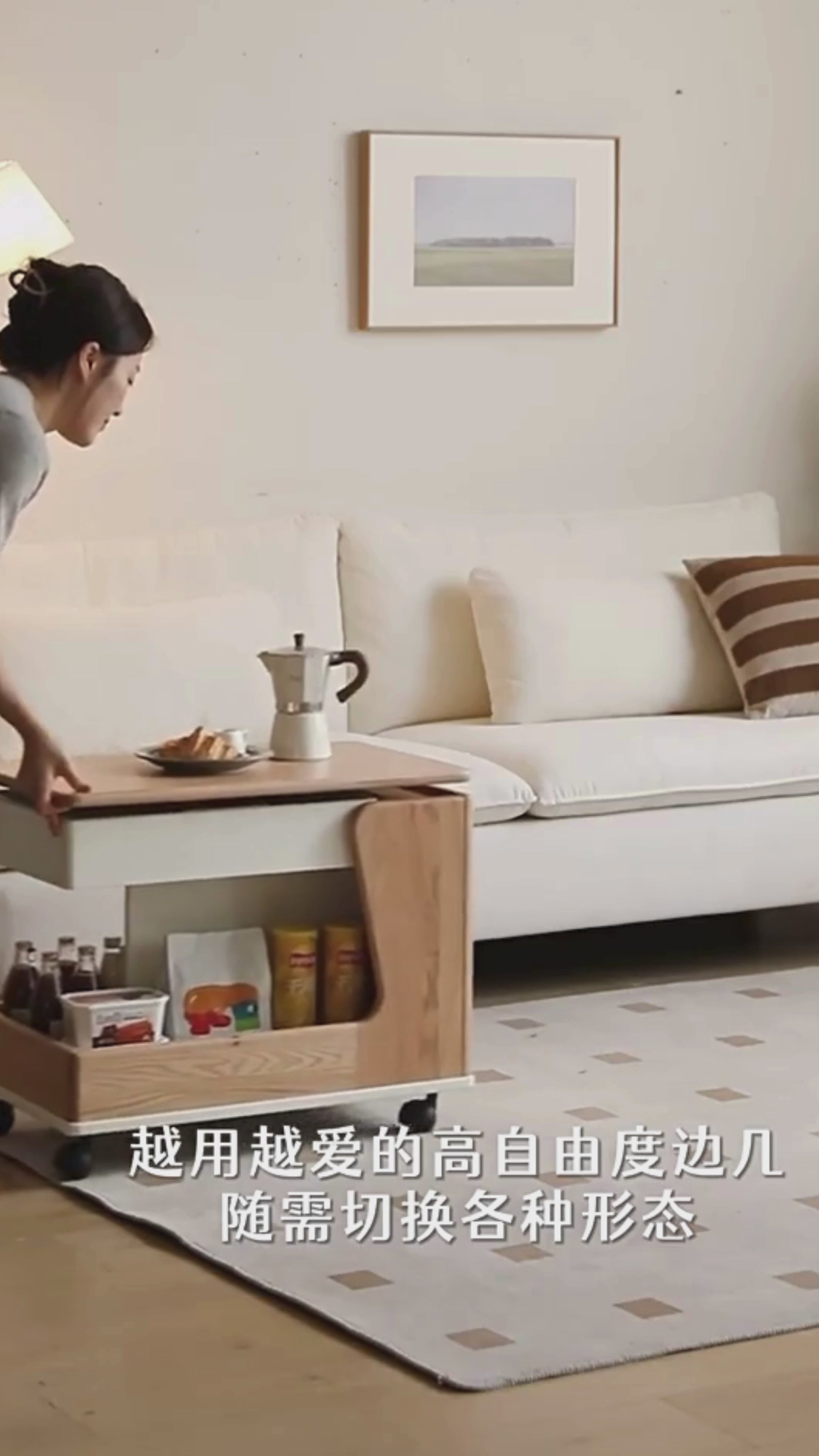 Oak Solid Wood Liftable Rotating Mobile Side Table