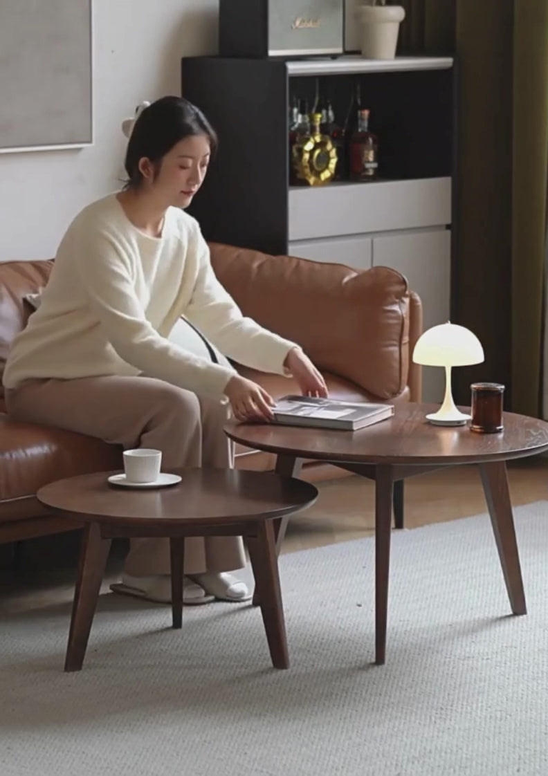 Oak, Solid Rubberwood Round Coffee Table Combination