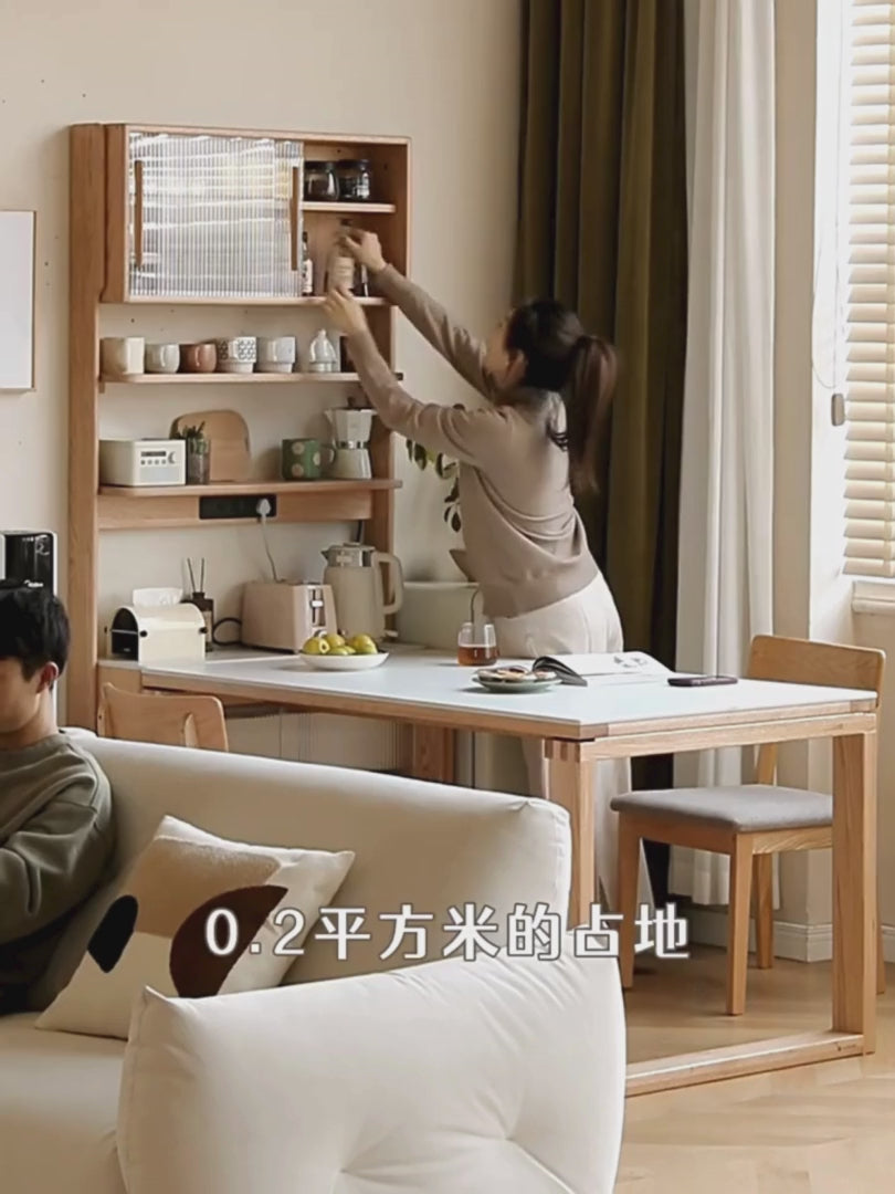 Oak, Solid RubberWood Rock Board Dining Sideboard Integrated Multifunctional Storage