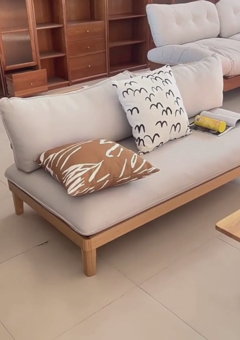 Color: 67.7x33.5x30.7 inch /172x85x78сm /Natural Wood Color /Three-seater off-white