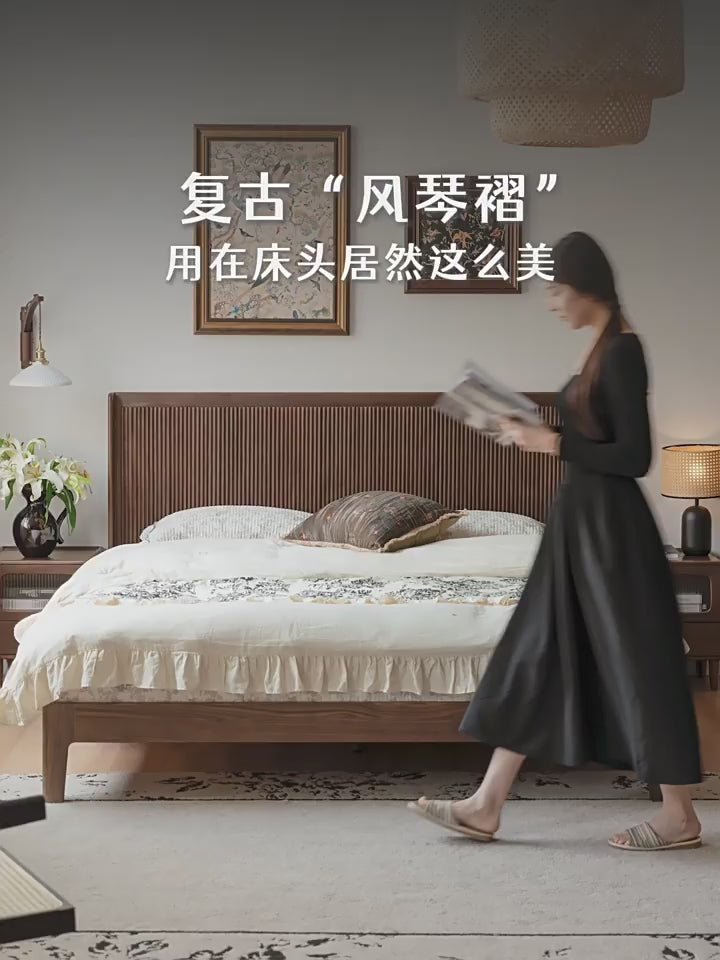 Black Walnut Solid Wood Italian Light Luxury Retro Bed