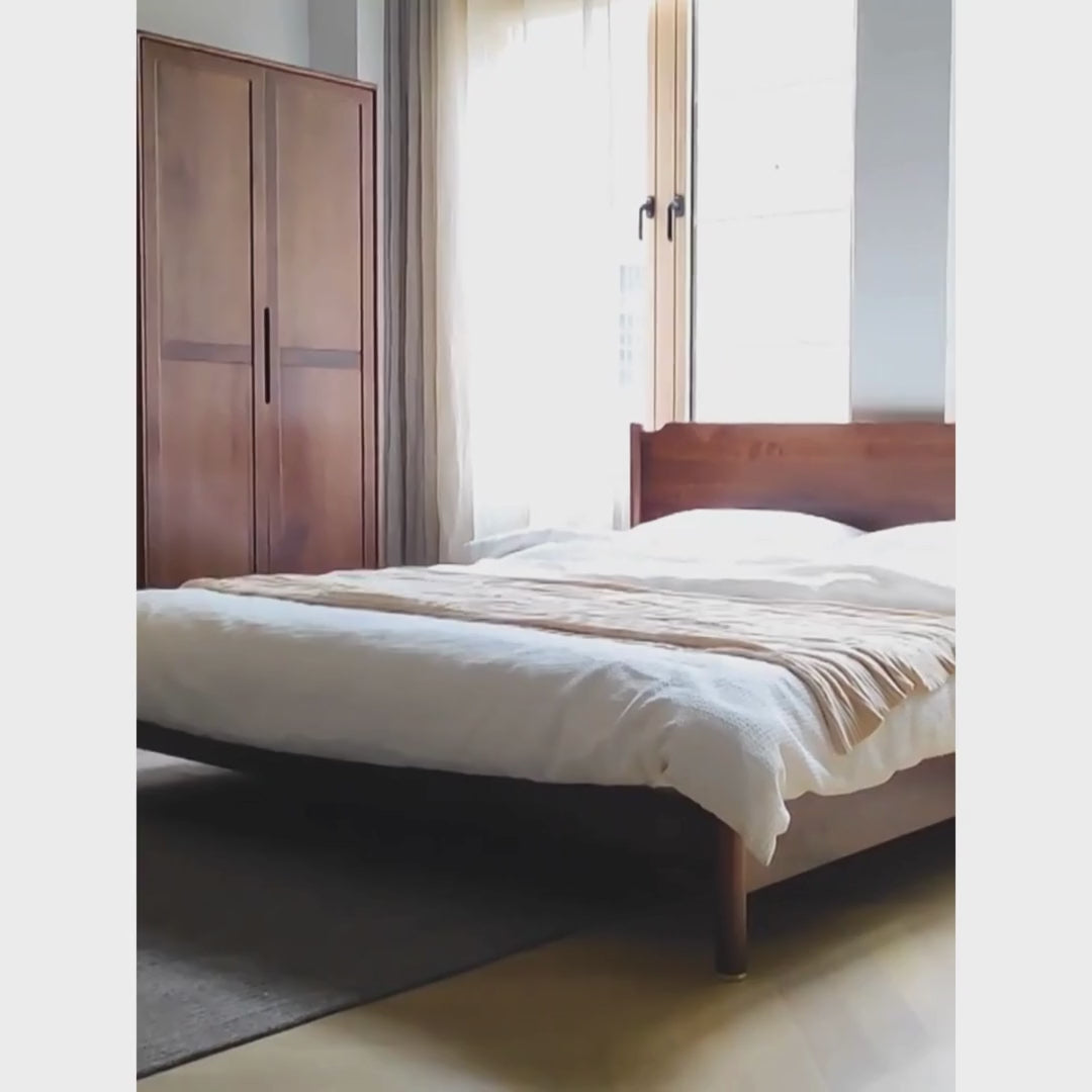 The "sparse" at the end of the bed evokes the leisure feeling of leaning on the railing in the south of the Yangtze River and listening to the wind and rain. The vertical railing in the middle balances the lightness and stability of the bed. The "density" of the bedside is reflected in the fine and tight texture of the black walnut wood, giving people a gorgeous and soft visual enjoyment.