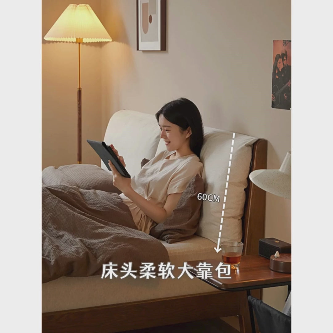 Oak Solid Wood Fabric Soft Bed Walnut Color Bed