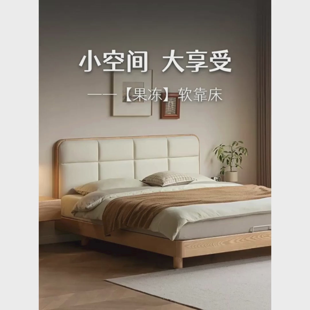 European Beech solid wood platform bed, headboard-free bed with drawer box bed